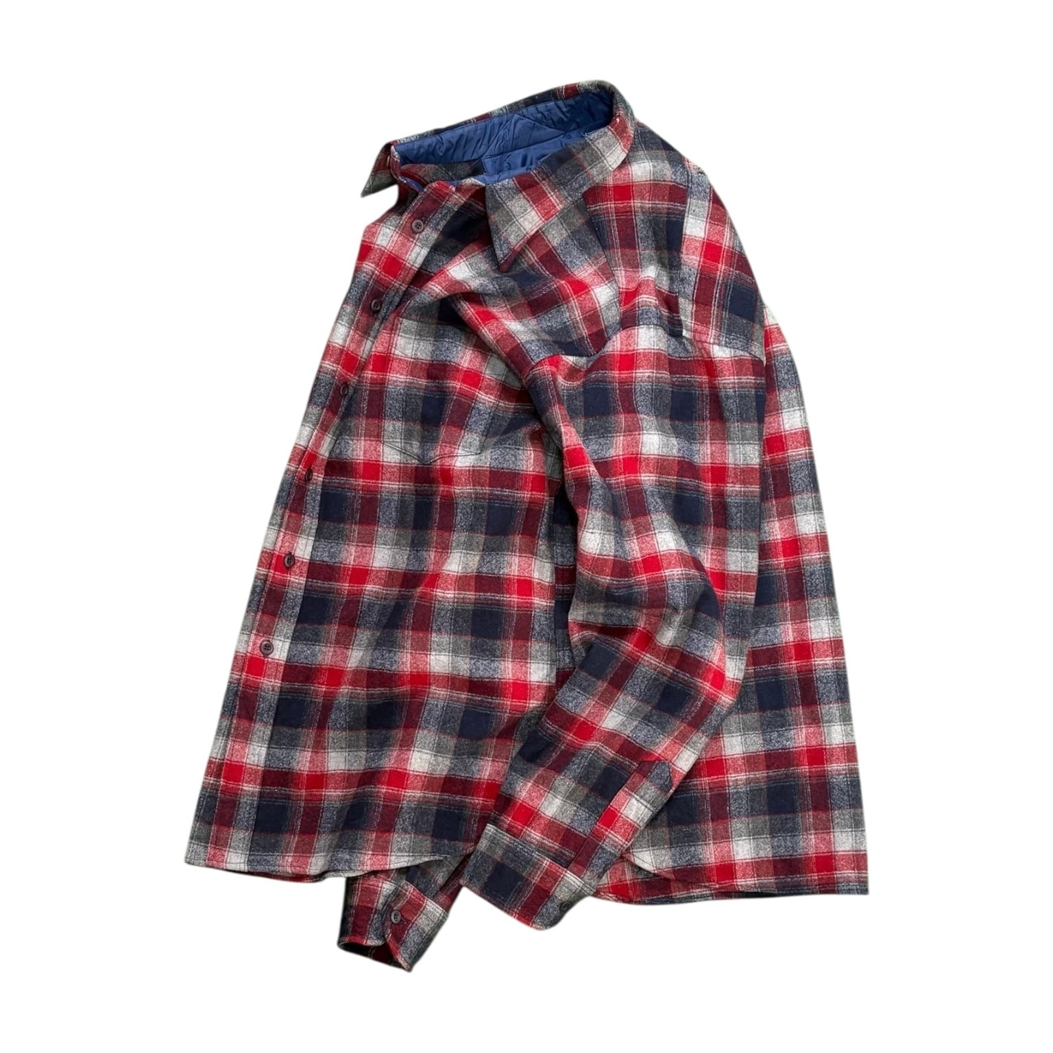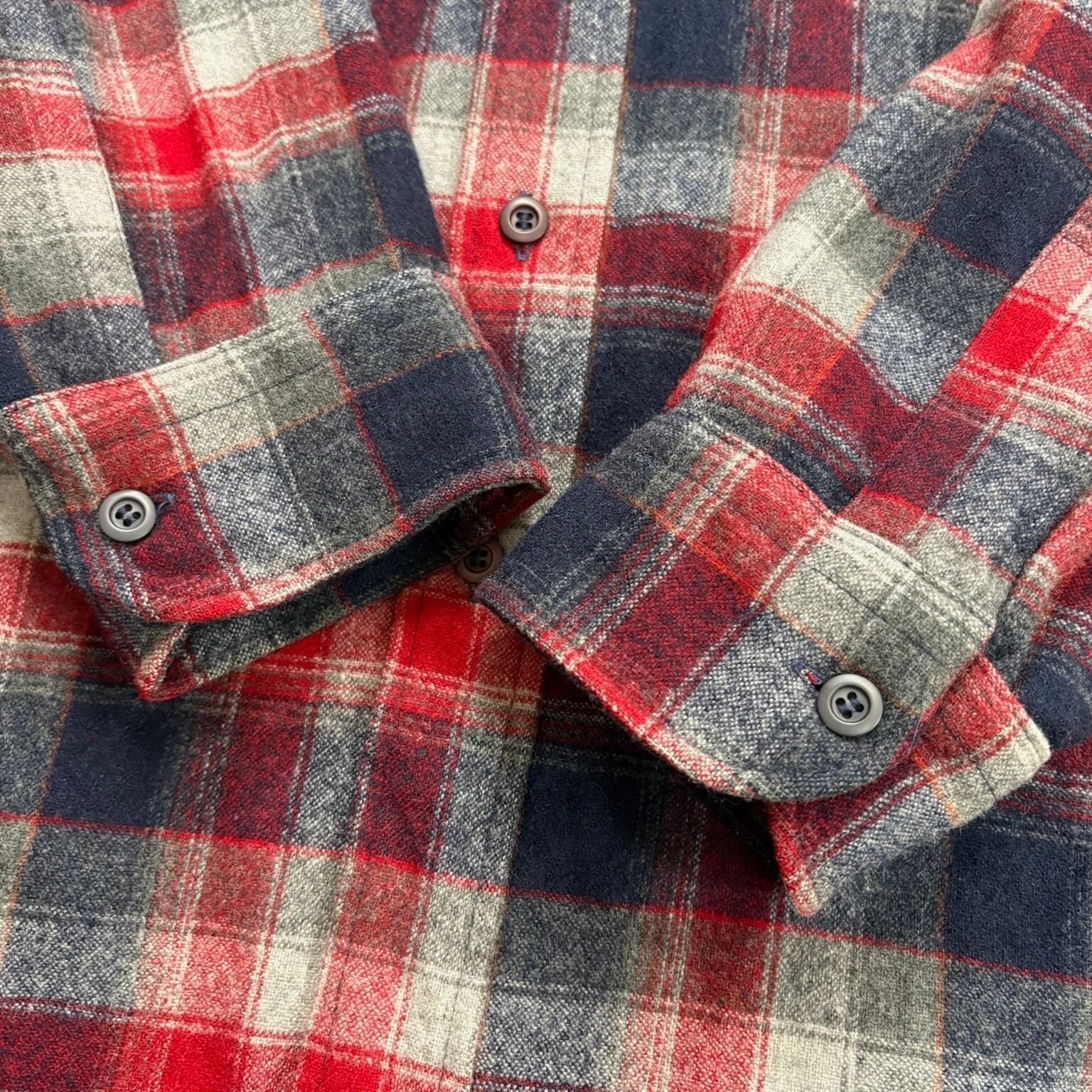 肉厚で上質なウール生地は、いかにもアメリカ製ペンドルトンという安心感のある質感。シャツとしてはもちろん、ライトアウター感覚で羽織っても成立します。赤チェックといっても派手すぎず、土臭さと品の良さが同居しているのがこのブランドの強さ。デニム、チノ、軍パン、スラックス、どれに合わせてもちゃんと絵になります。