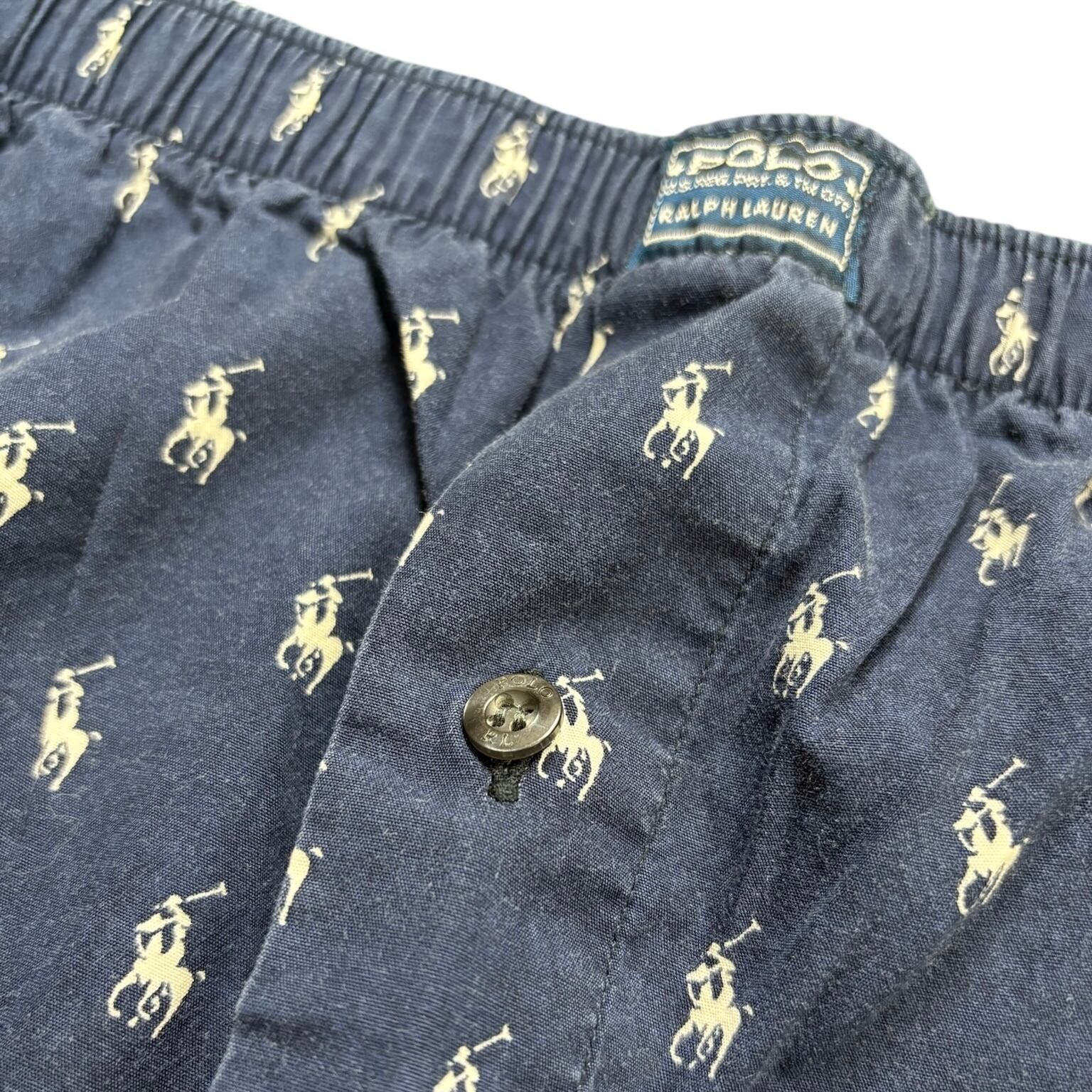 ネイビーボディに、無数の白いポニーが散りばめられたラルフローレンのパジャマパンツ。総柄ながらも配色は非常に落ち着いていて、決してうるさくならないのがこの一本の良さです。