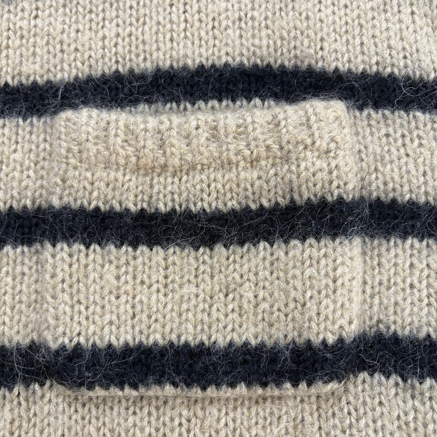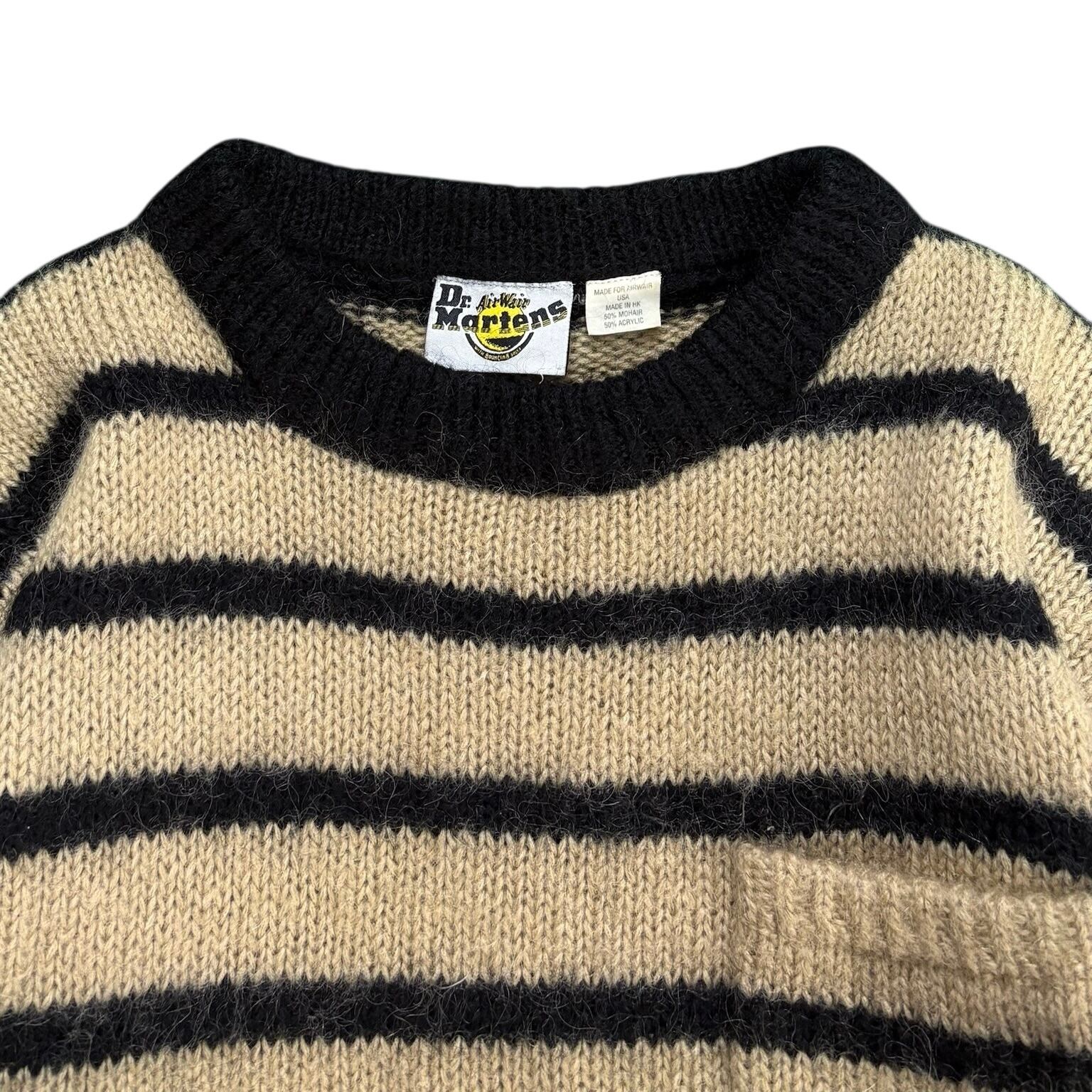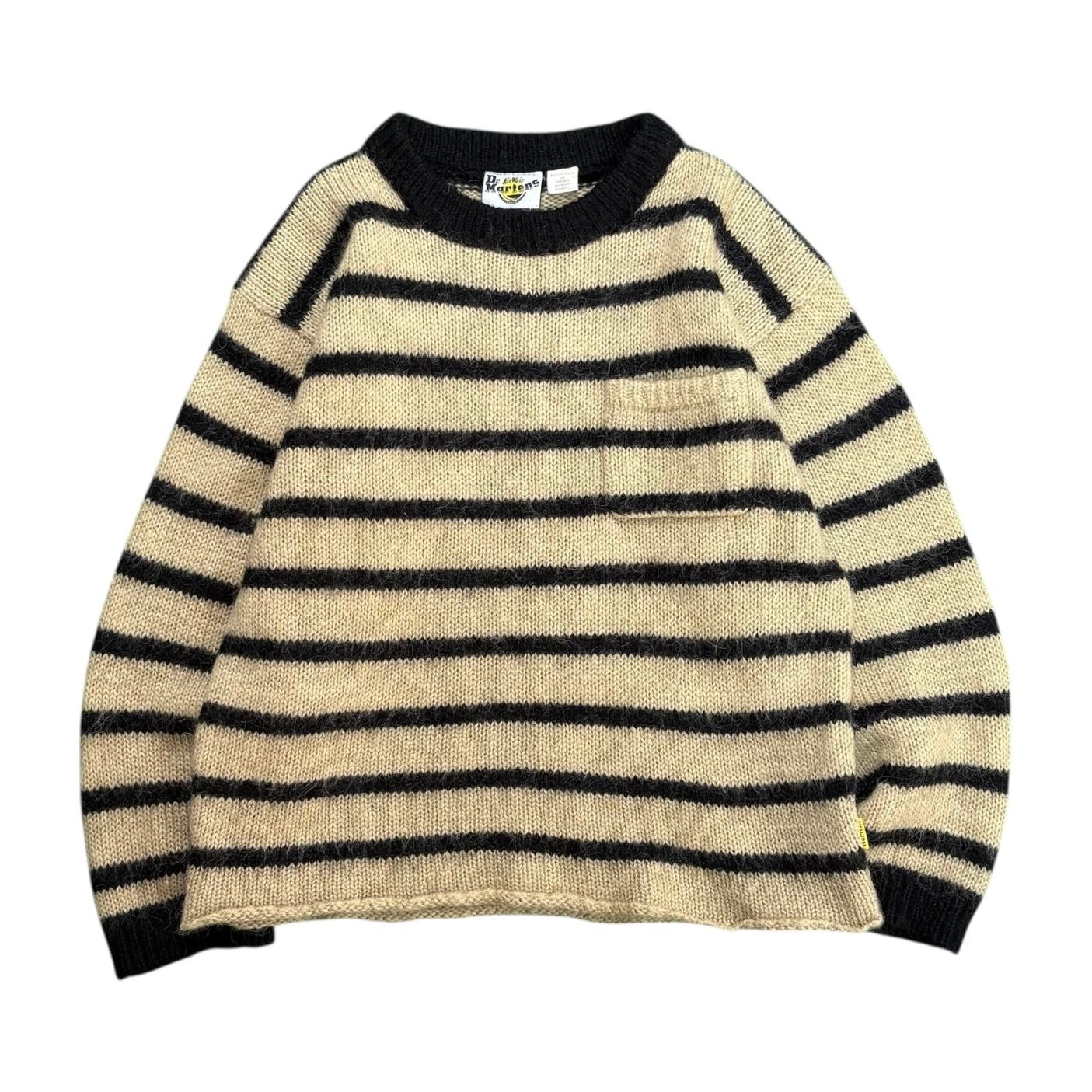 90年代のドクターマーチン、しかもモヘア混。それだけでも十分すぎる条件ですが、さらに黄色×黒のボーダー。完全にやりすぎなくらいの組み合わせなのに、不思議と成立してしまっているのがこのニットの怖さです。