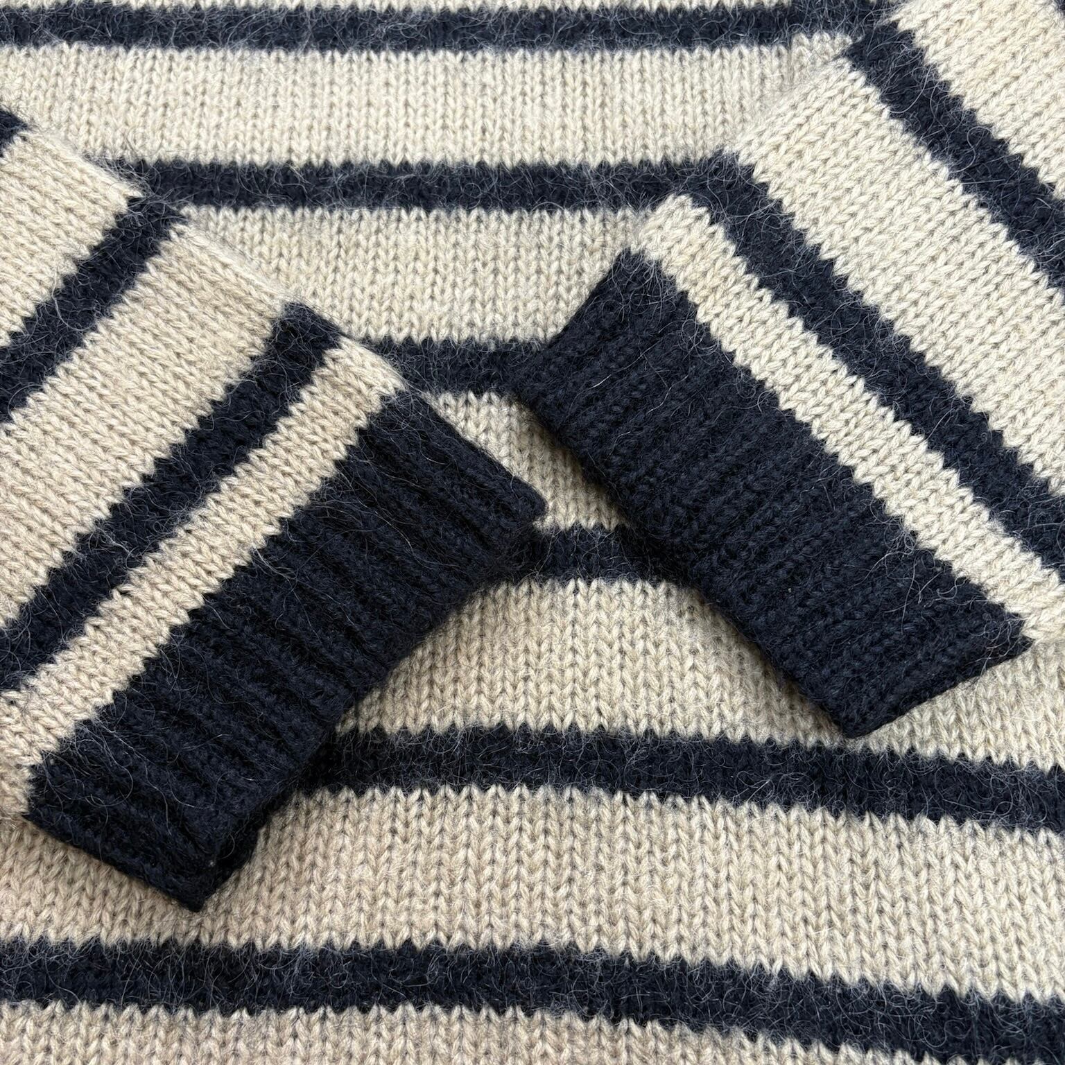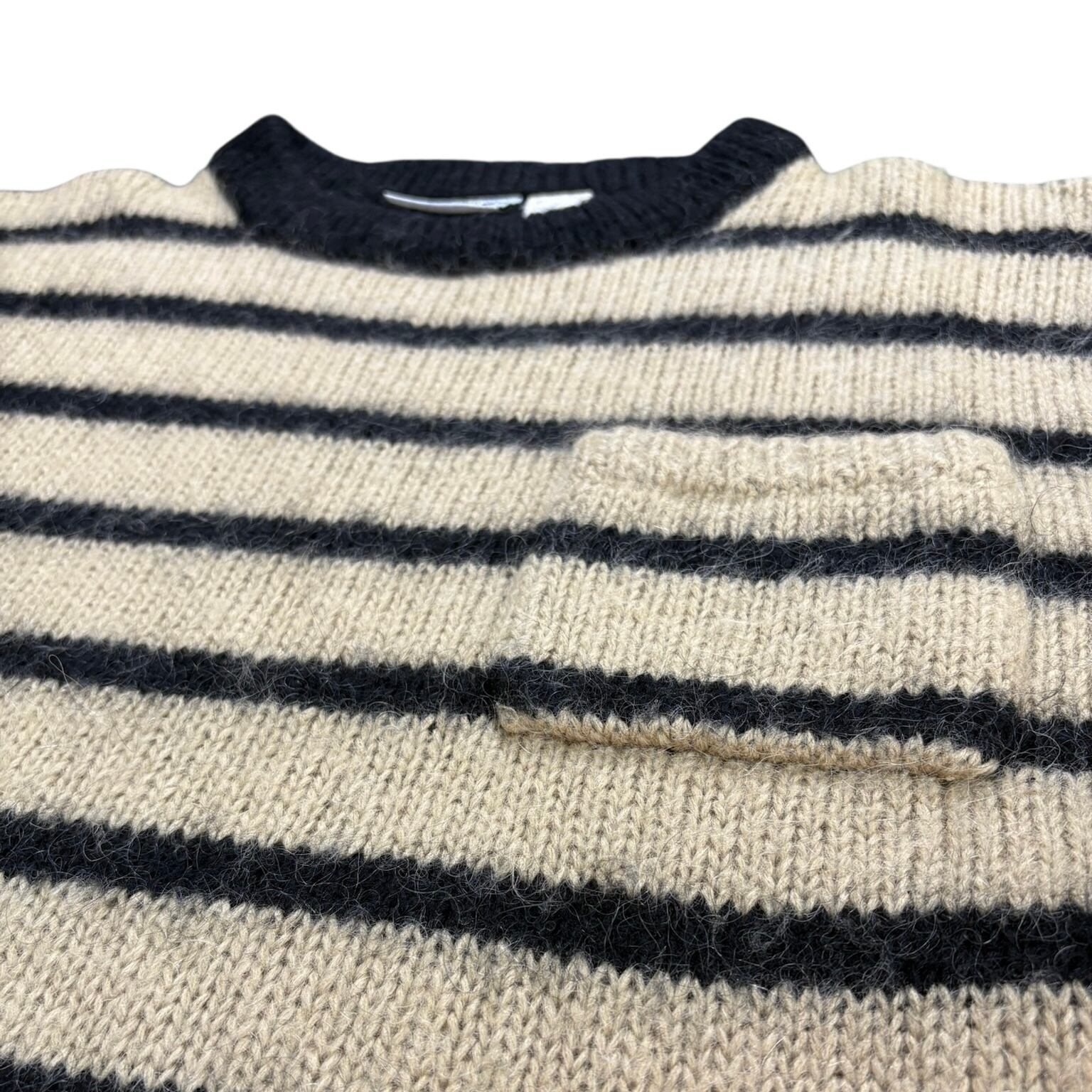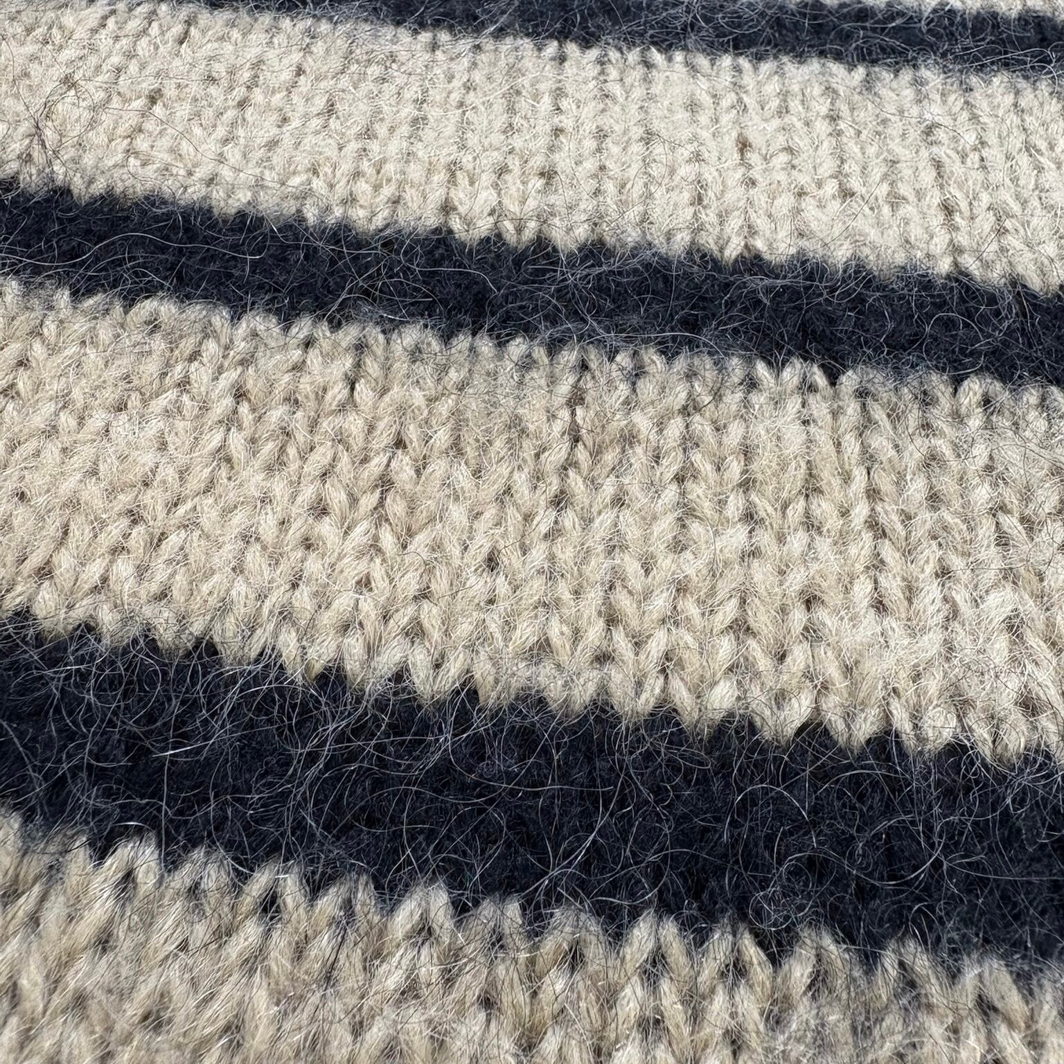 90年代のドクターマーチン、しかもモヘア混。それだけでも十分すぎる条件ですが、さらに黄色×黒のボーダー。完全にやりすぎなくらいの組み合わせなのに、不思議と成立してしまっているのがこのニットの怖さです。