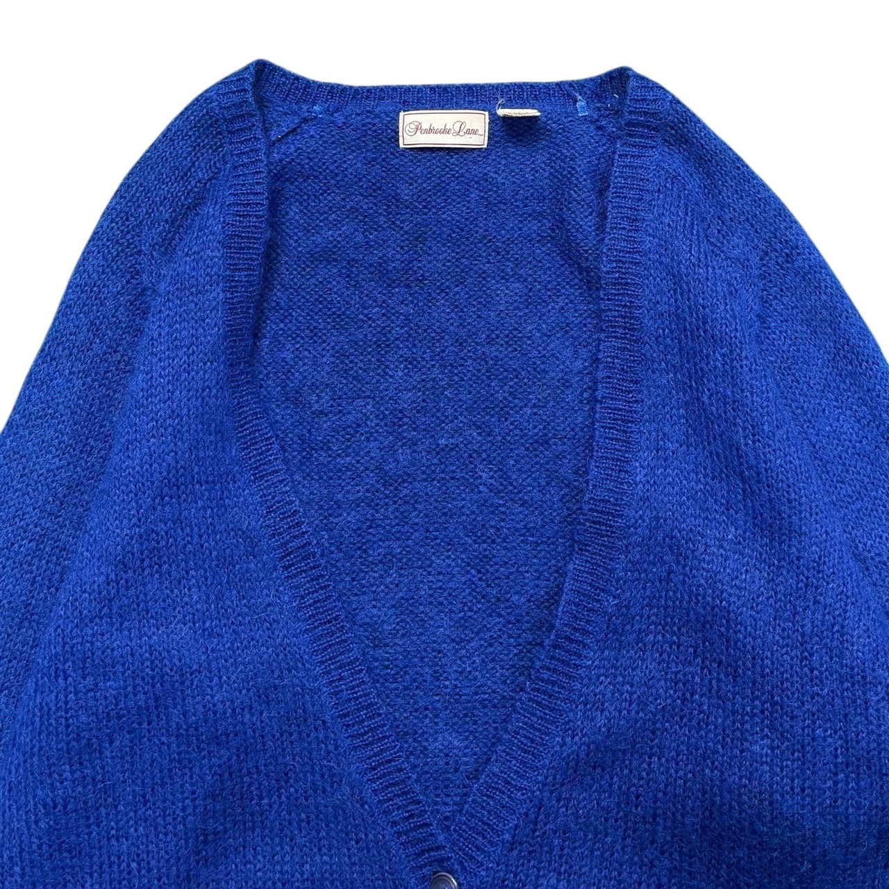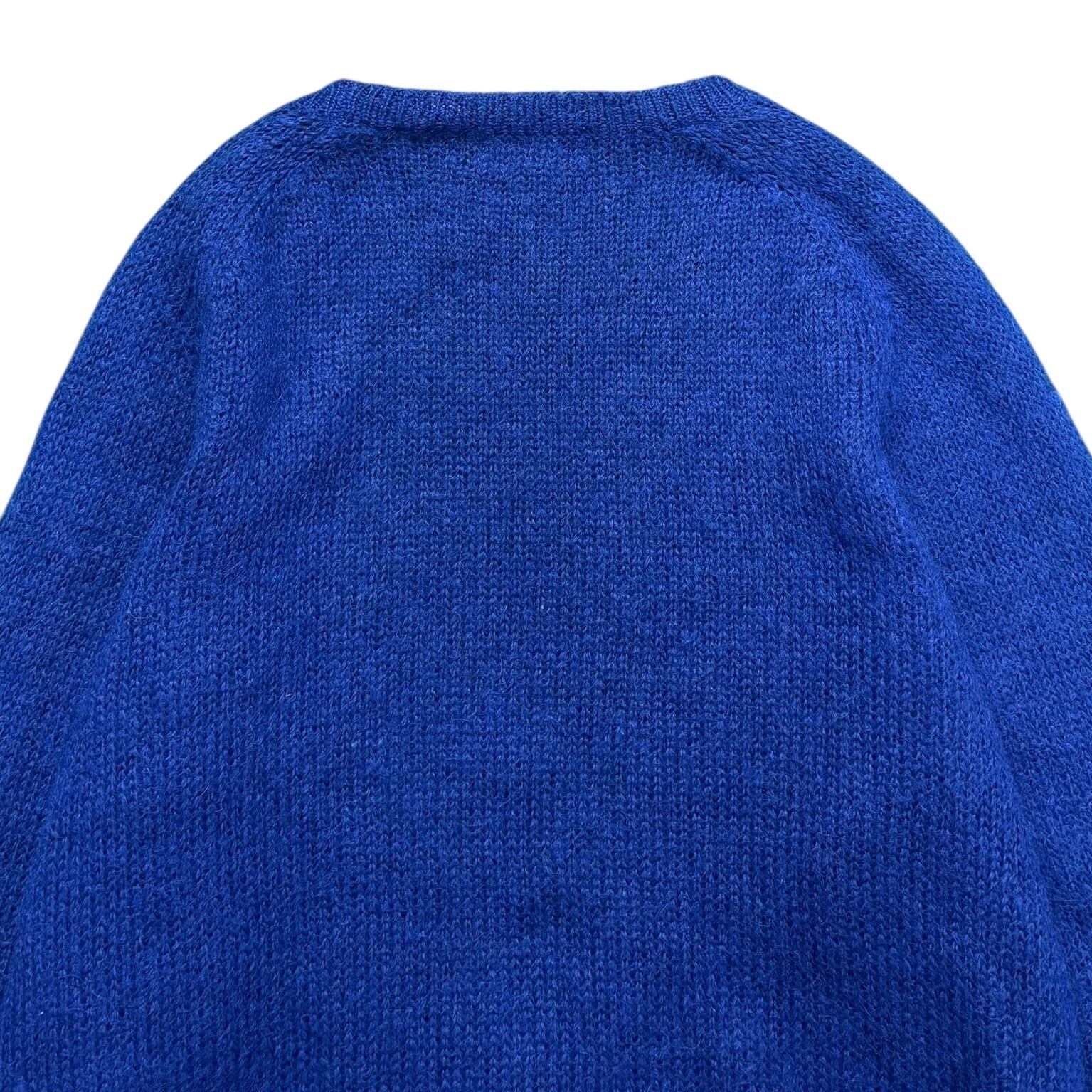 青のモヘアカーディガン。