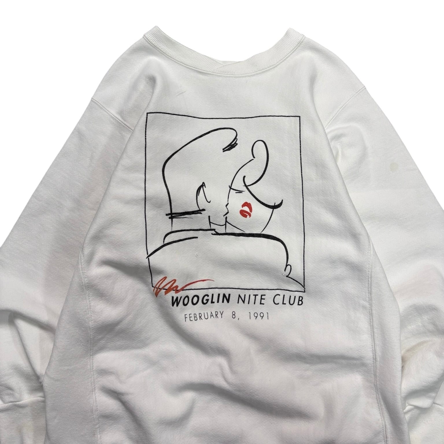 フロントには愛し合う男女のプリント、かなり洒落っ気のあるデザインです。Wooglin Nite Clubは何かのクラブ名でしょうか。