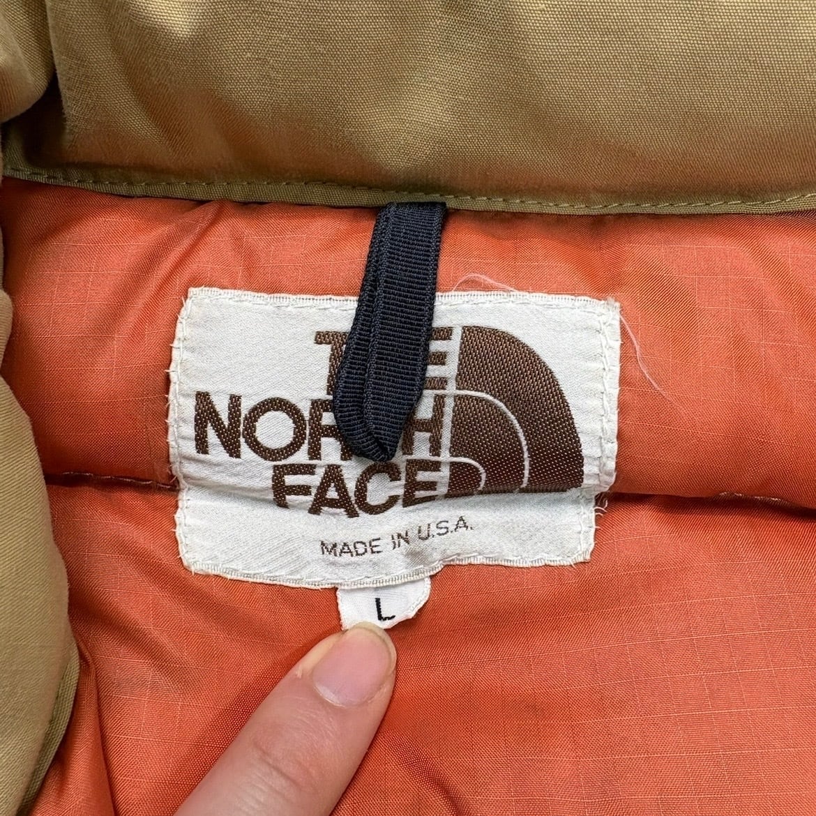 希少な茶タグ期のダウンジャケット。アメリカ製、サイズL。