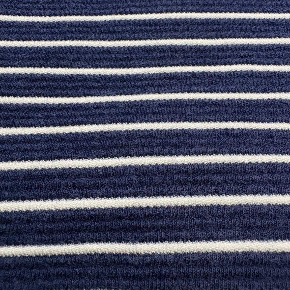 細いピッチのボーダーが入る、すっきりした印象のスキッパータイプ。