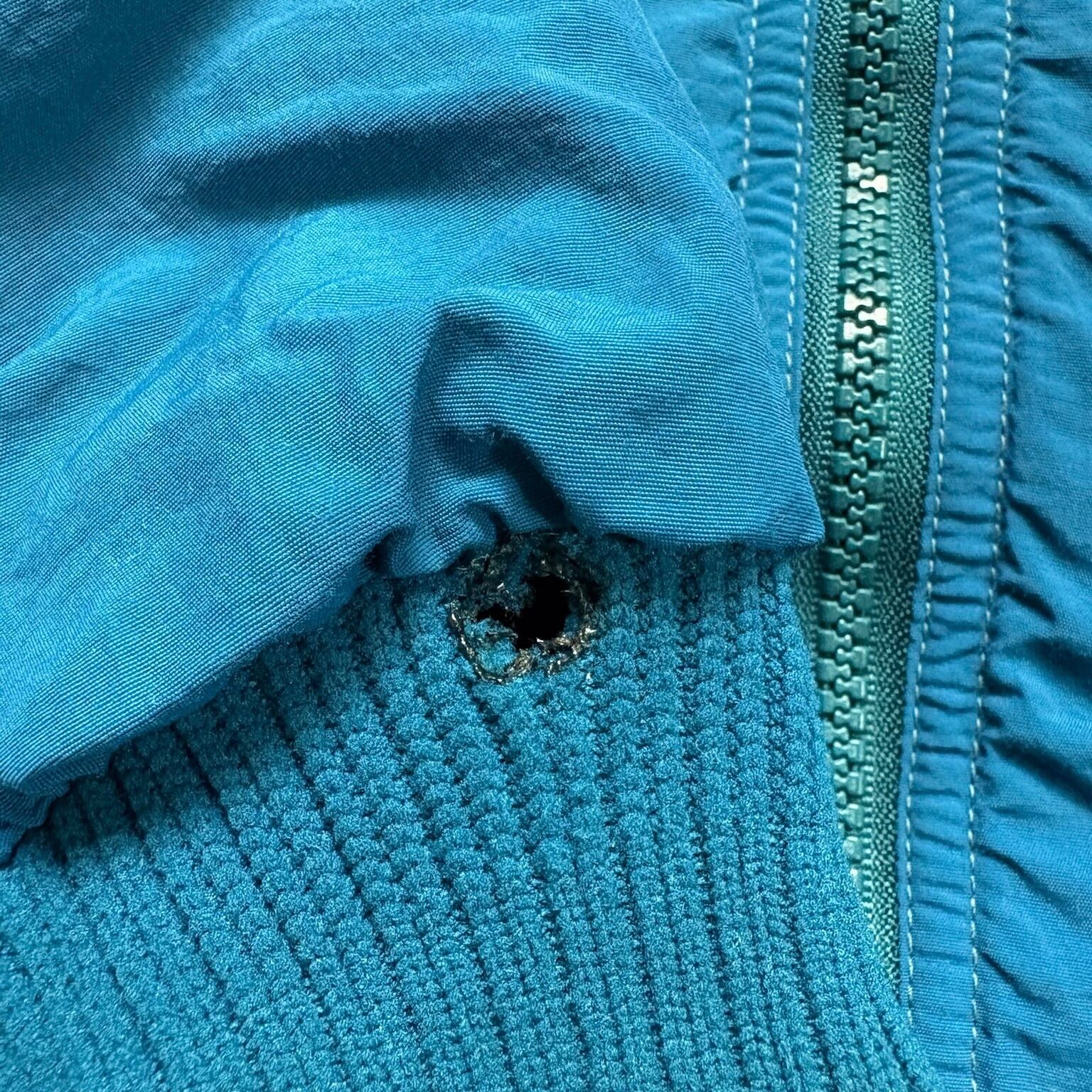 右袖リブ穴、両袖、前身頃汚れあり