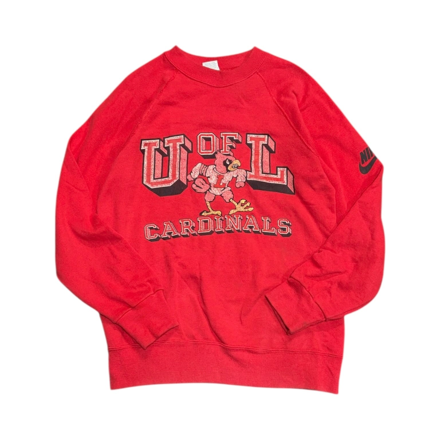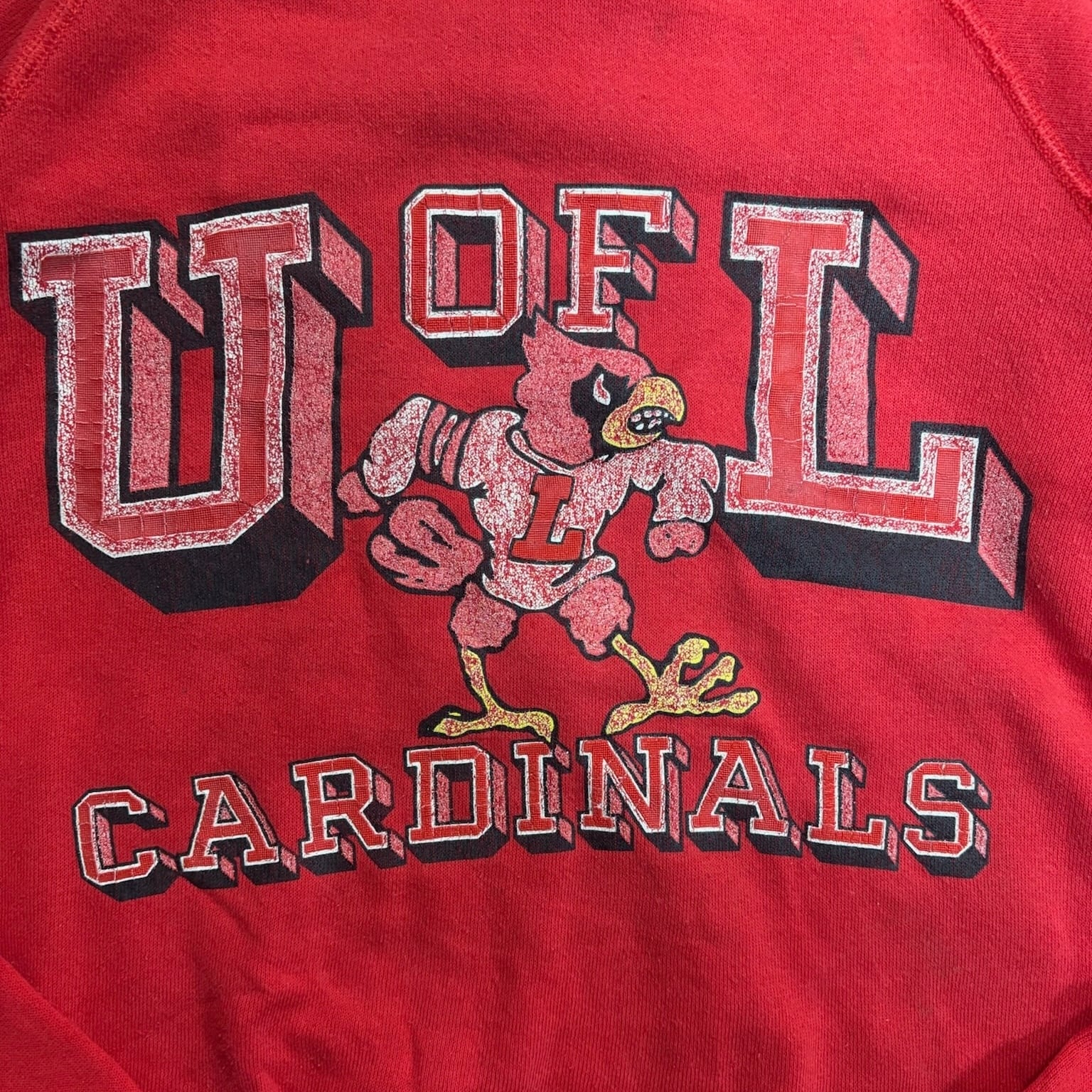 かなり目を引くカラーに、フロントは U of L Cardinals のカレッジプリント。
