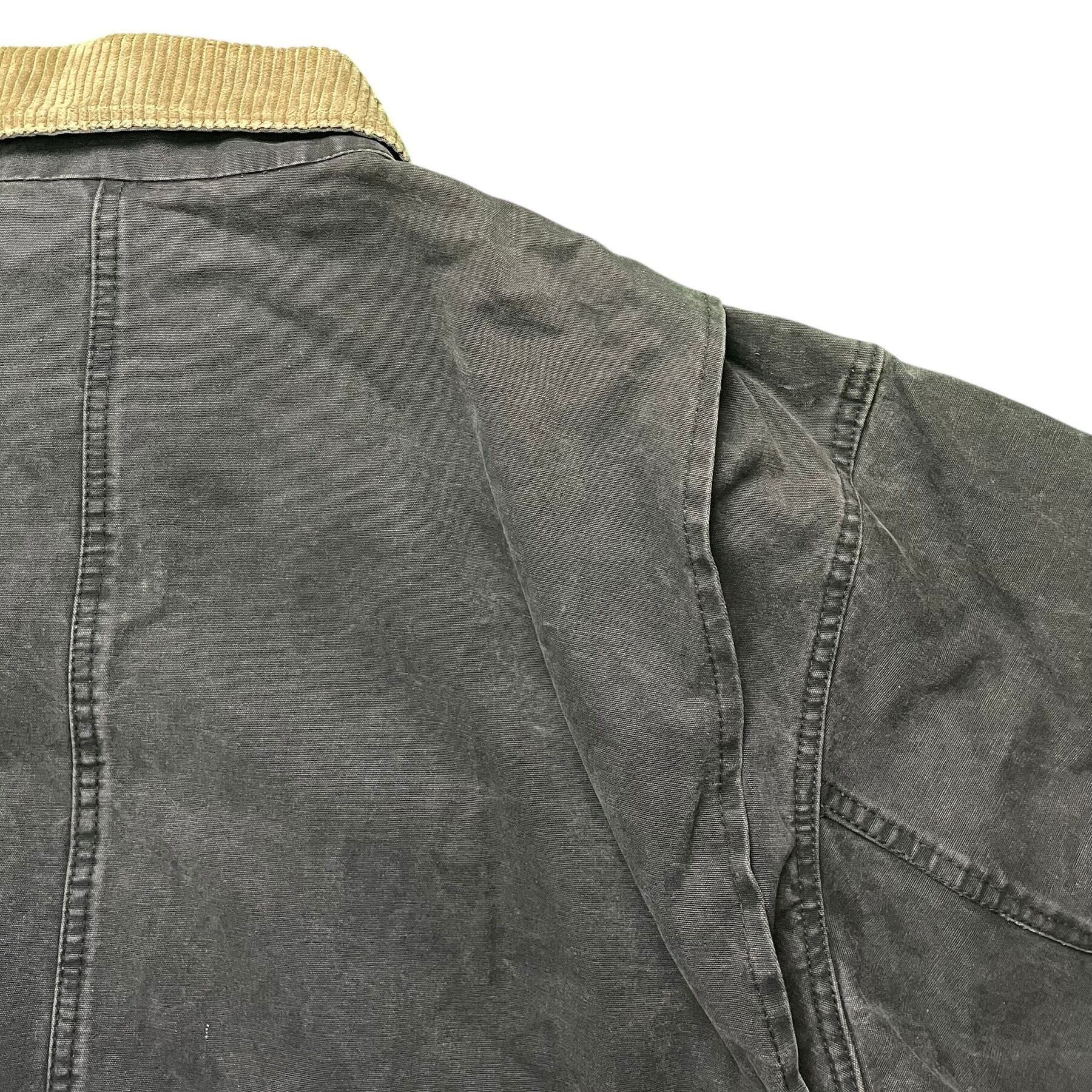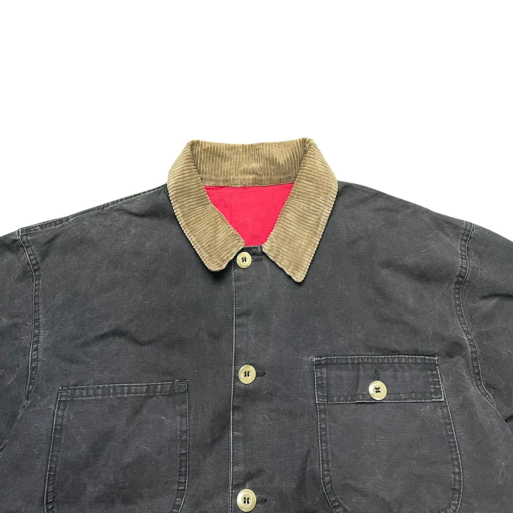 ベースはワークウェアながら、コーデュロイ襟や裏地の配色など、どこかハンティングジャケットのニュアンスも感じる一着。