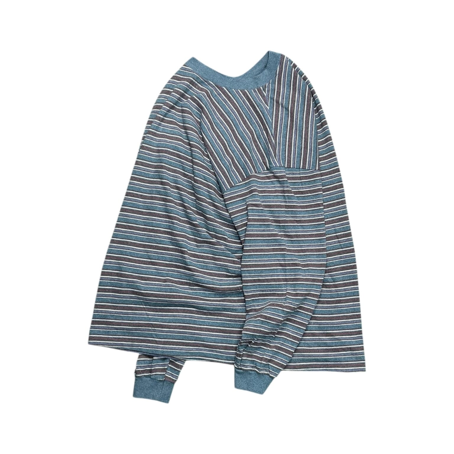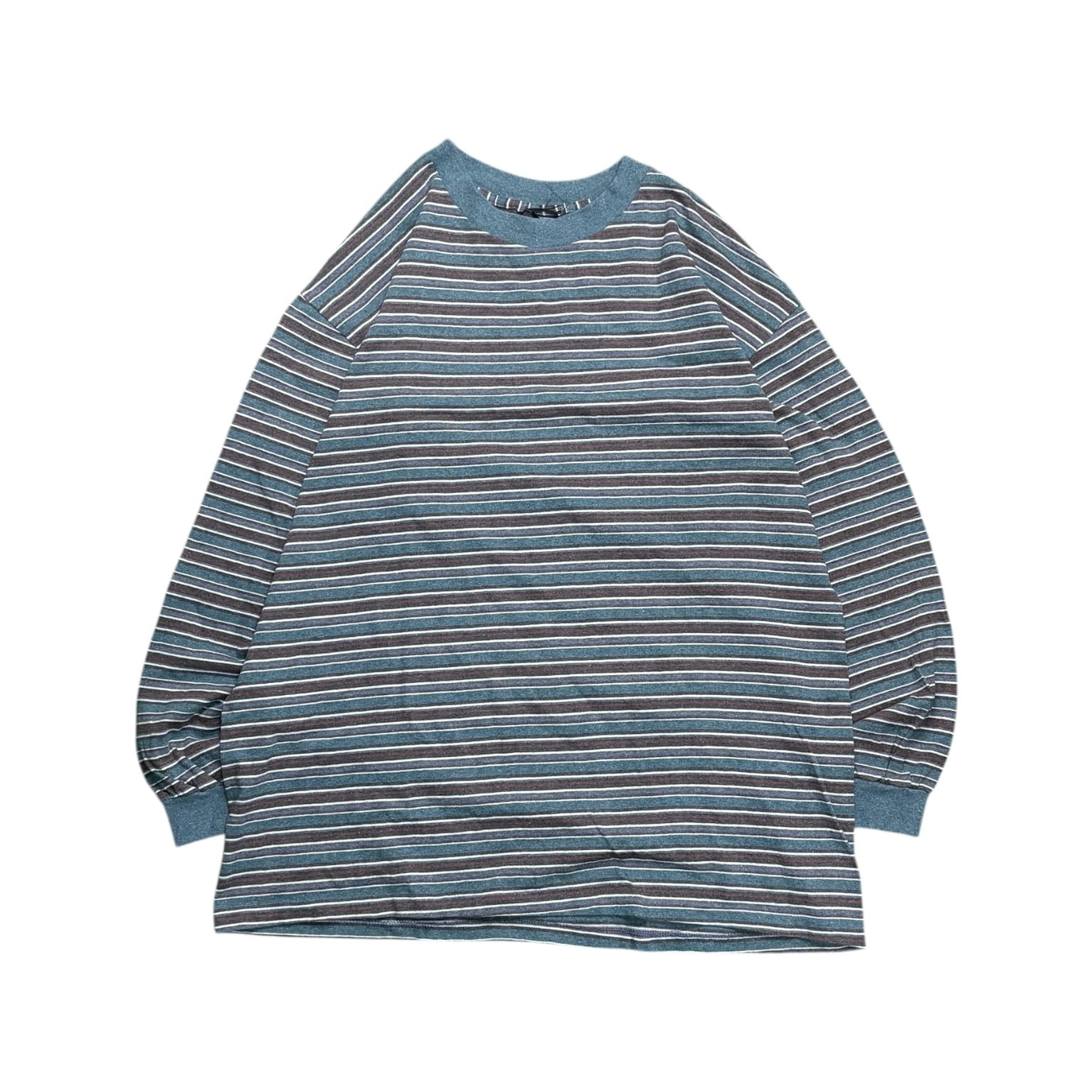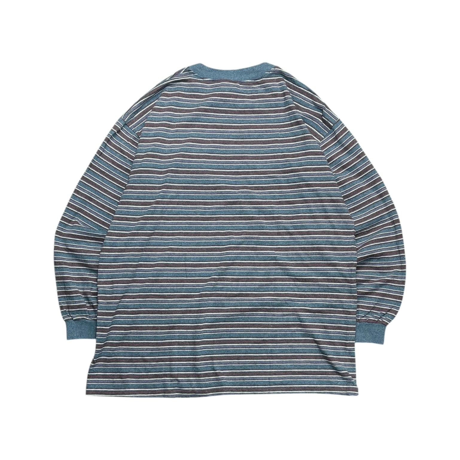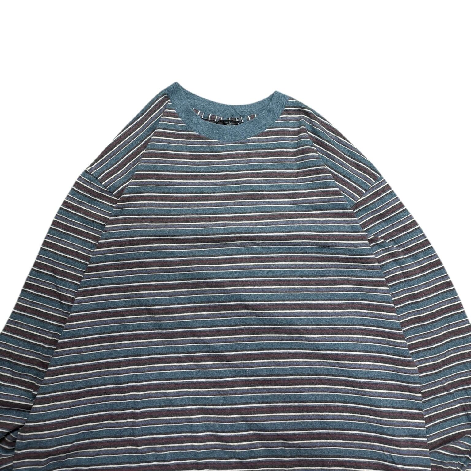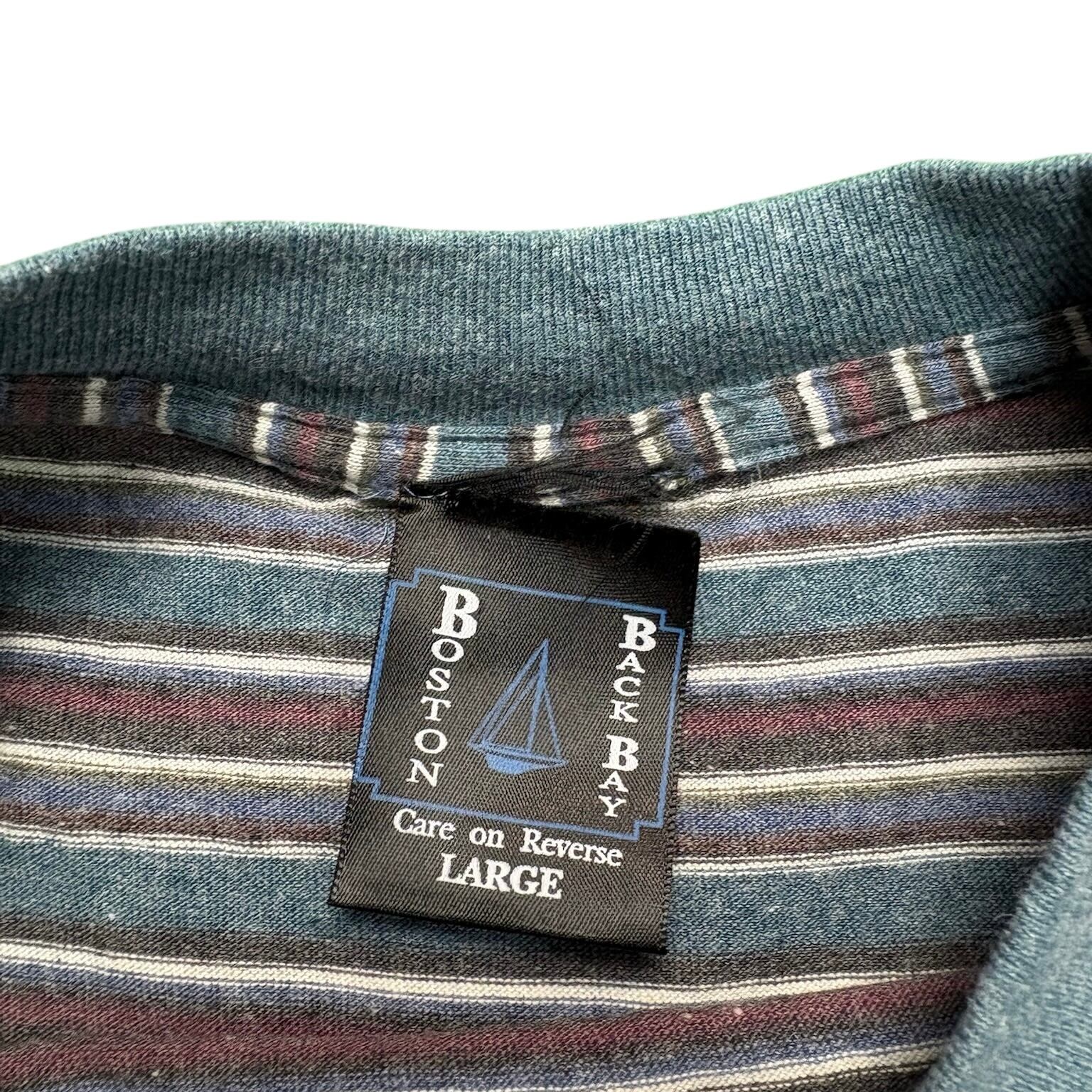90s BOSTON BACK BAY Multi Border Long Sleeve Shirt Made in USA