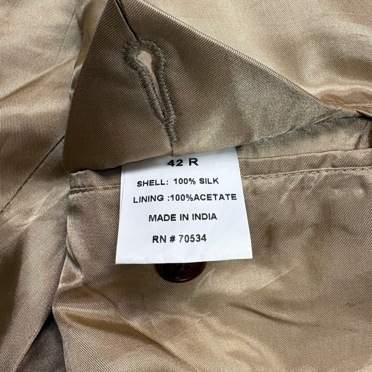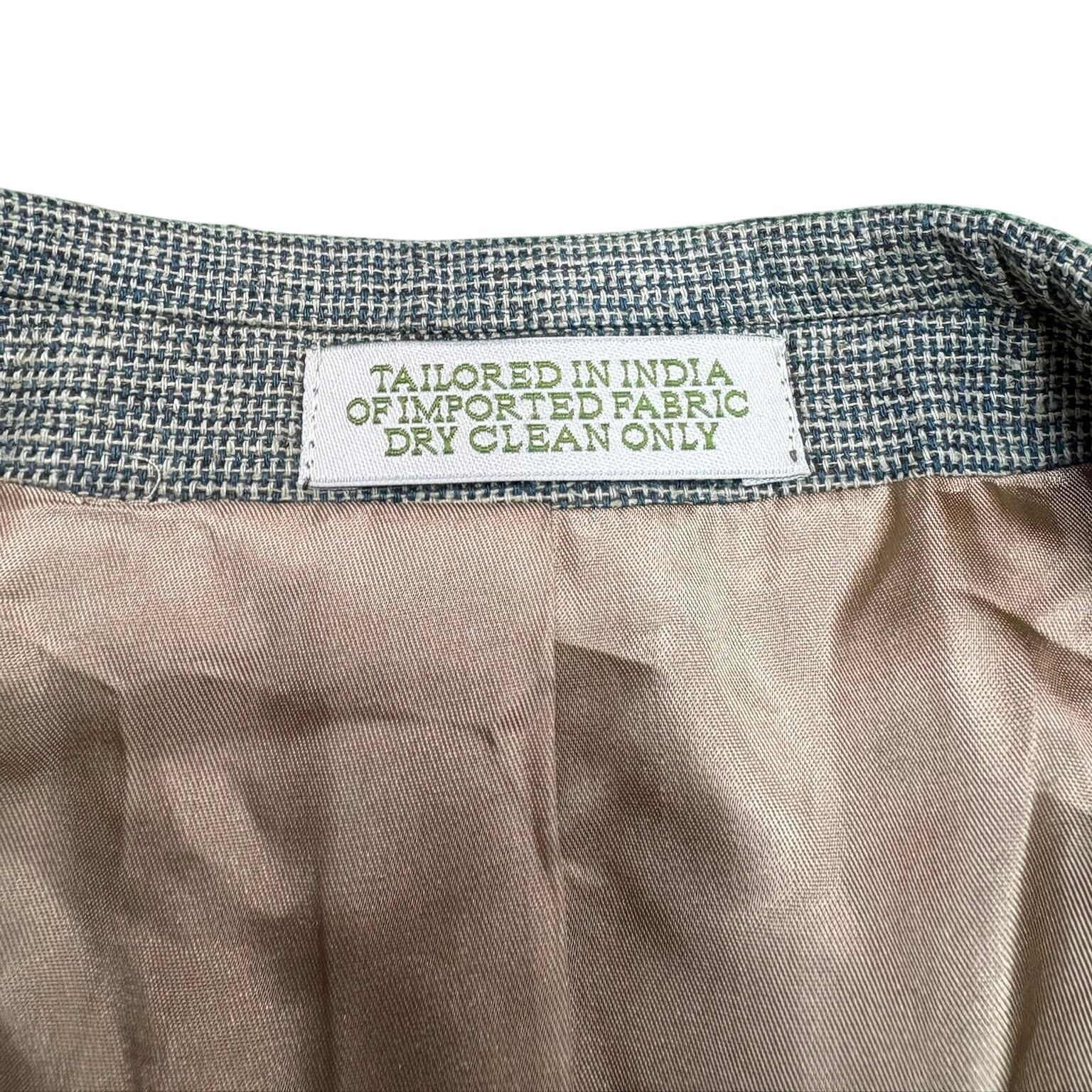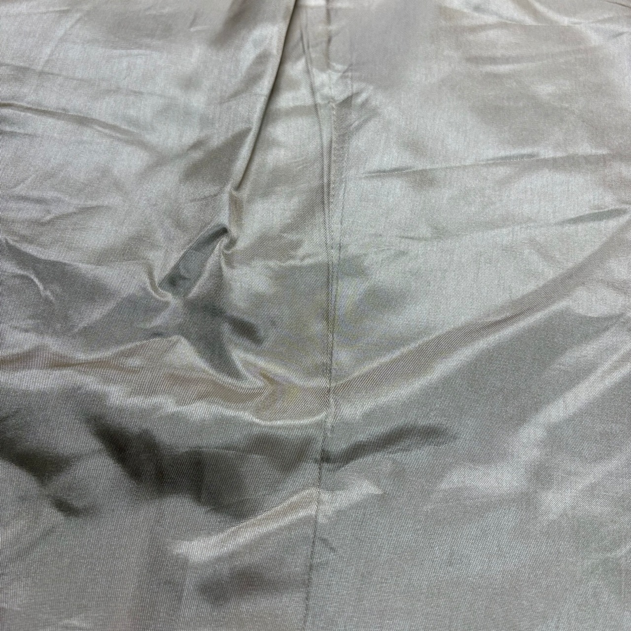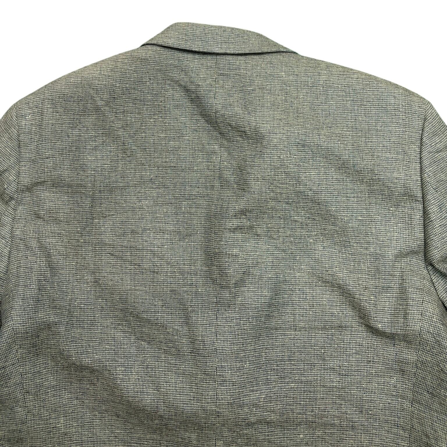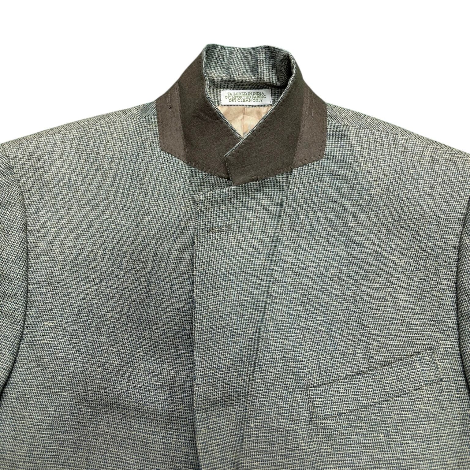 この一着でまず目を引くのは、淡いセージグリーンのようなニュアンスを帯びた柔らかな色味と、奥行きのある表情。無地に見えて実はしっかりと生地に動きがあり、近くで見るほど良さが伝わるタイプです。派手ではないのに印象に残る、その地味すぎない渋さがとても良い。古着のテーラードにありがちな堅さが薄く、肩肘張らずに羽織れるのも魅力です。