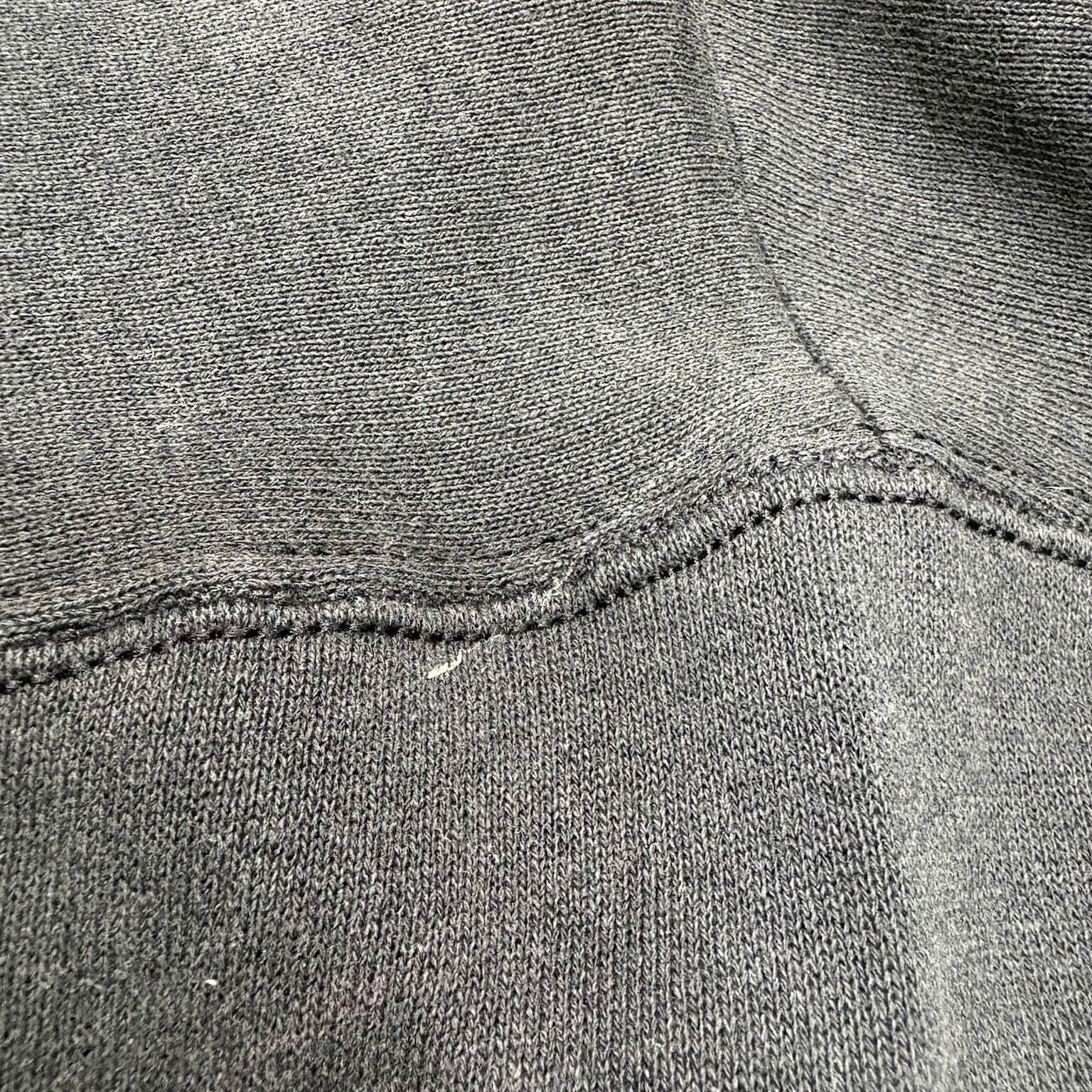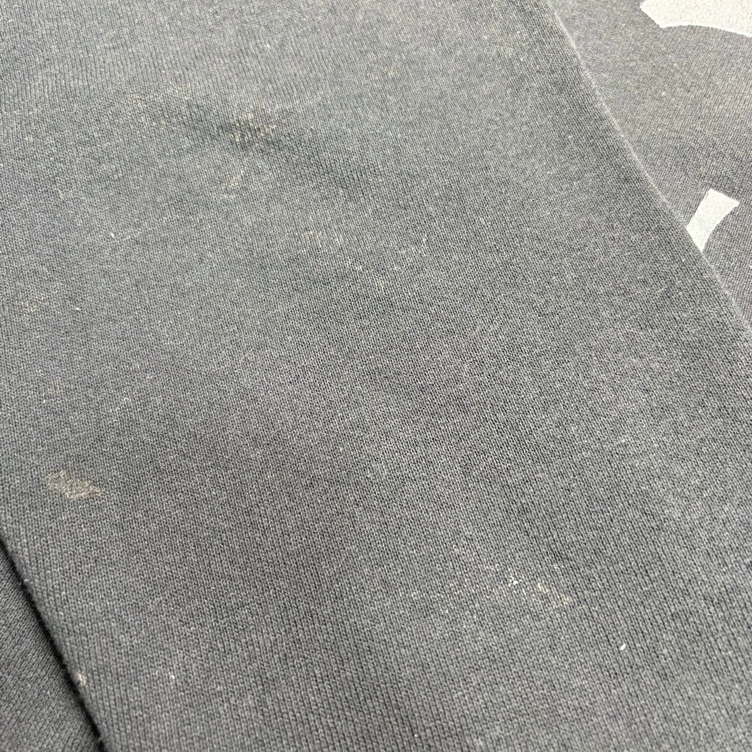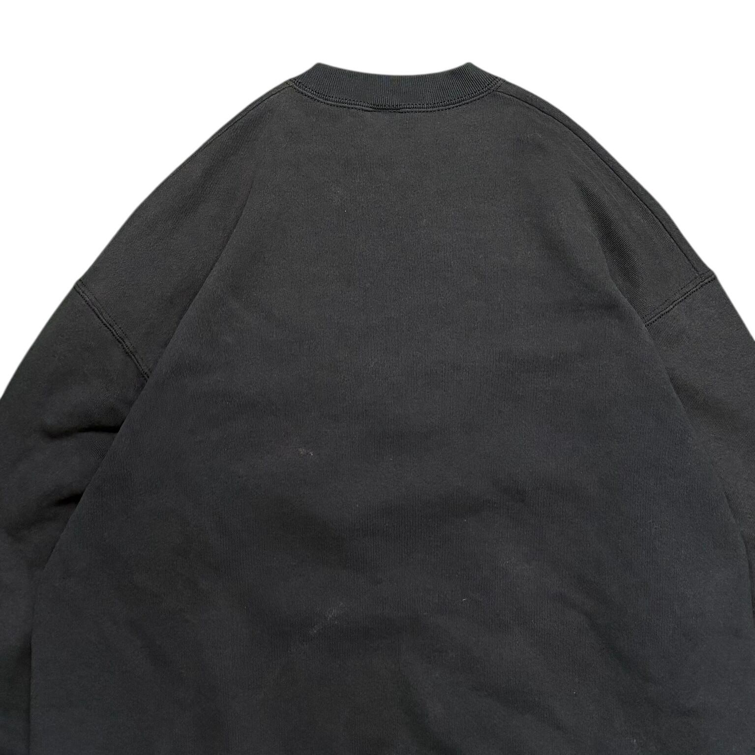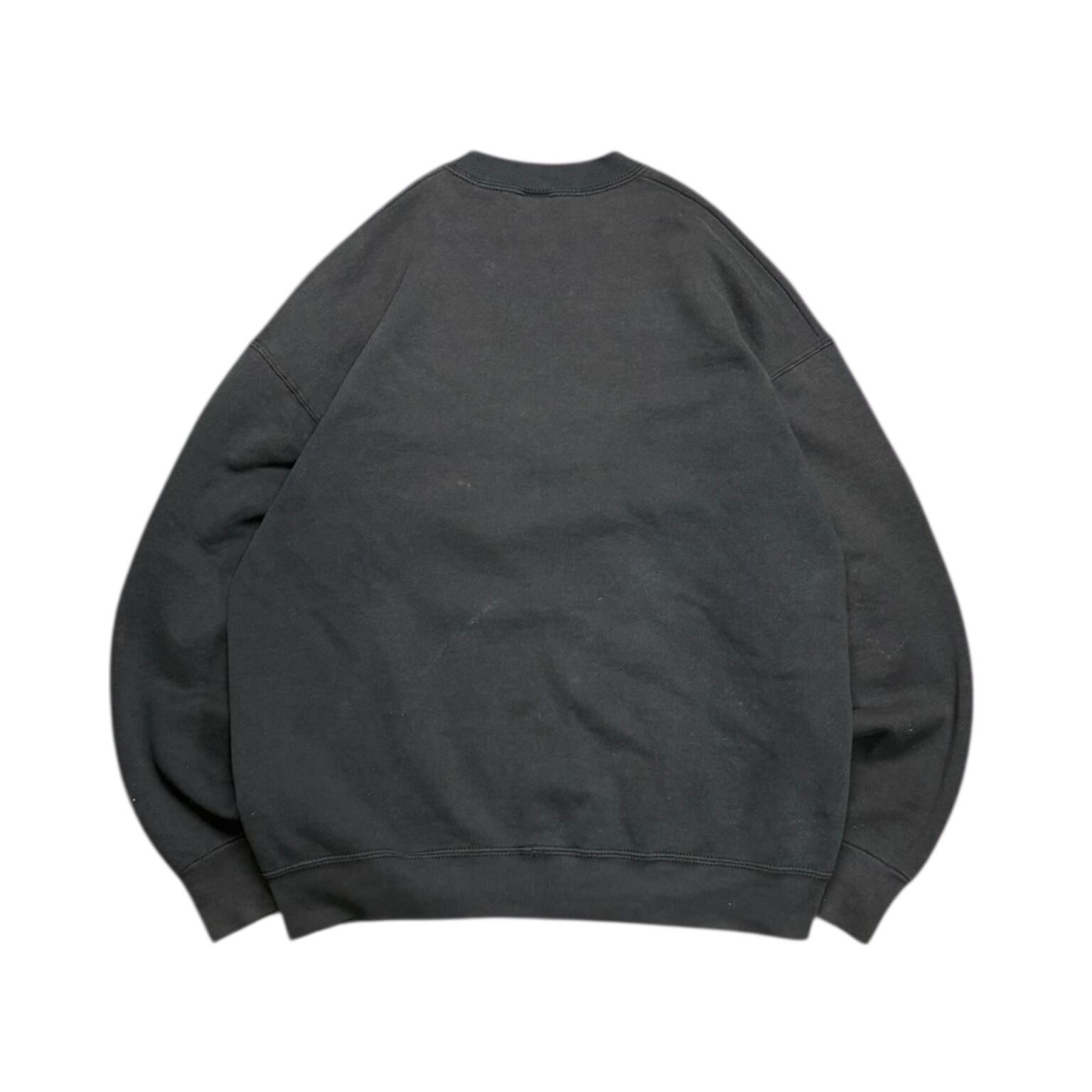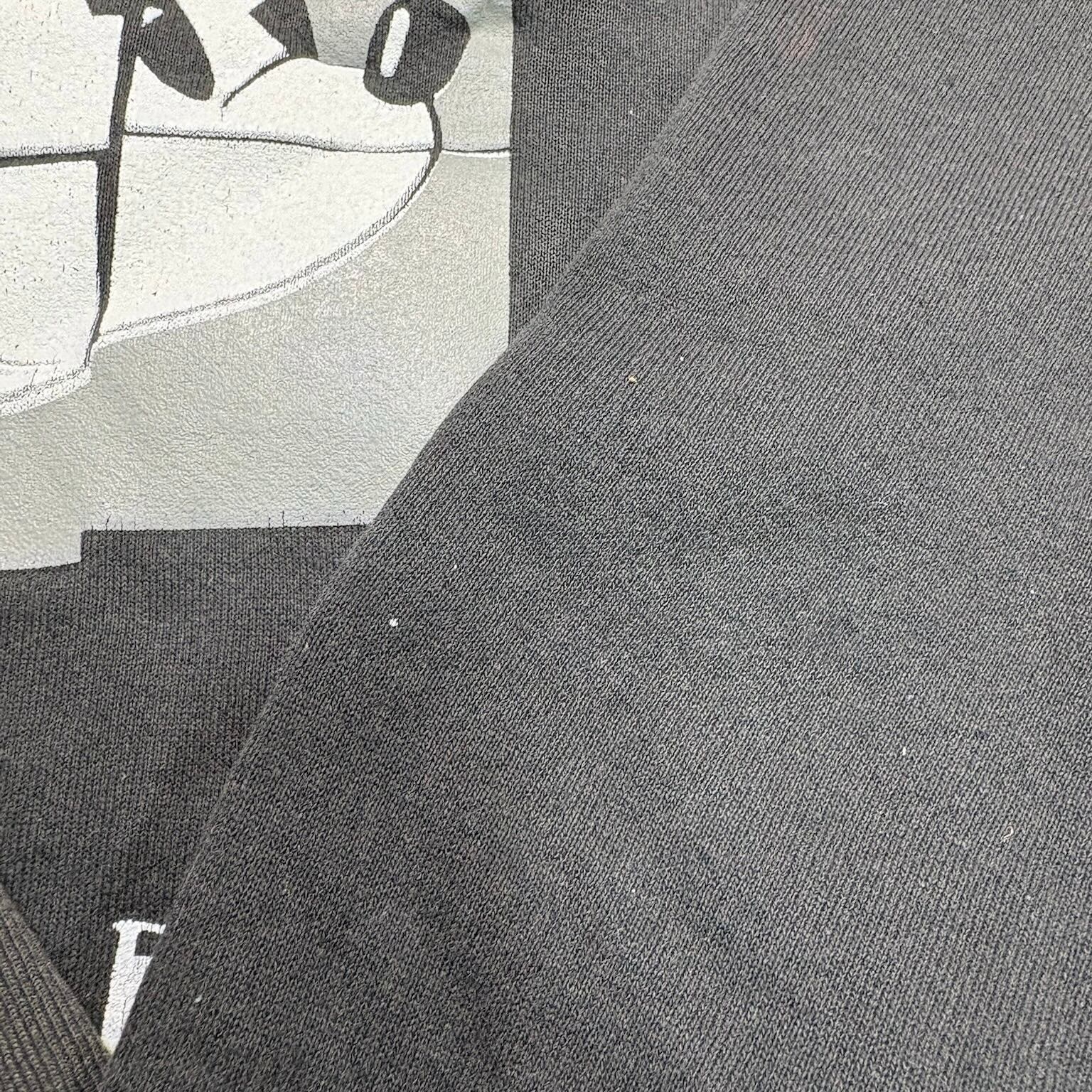 キャラクター物でありながら、いわゆるかわいい古着の枠に収まりきらない、かなり良いバランスの一着です。ブラックボディに、ミッキーの顔を幾何学的に切り取ったようなアートワークが乗ることで、ポップさよりもむしろグラフィックとしての完成度が前に出ている。ディズニーらしい親しみやすさは残しつつ、90年代らしいデザイン感覚がしっかり反映された、ただのキャラスウェでは終わらない空気を持っています。