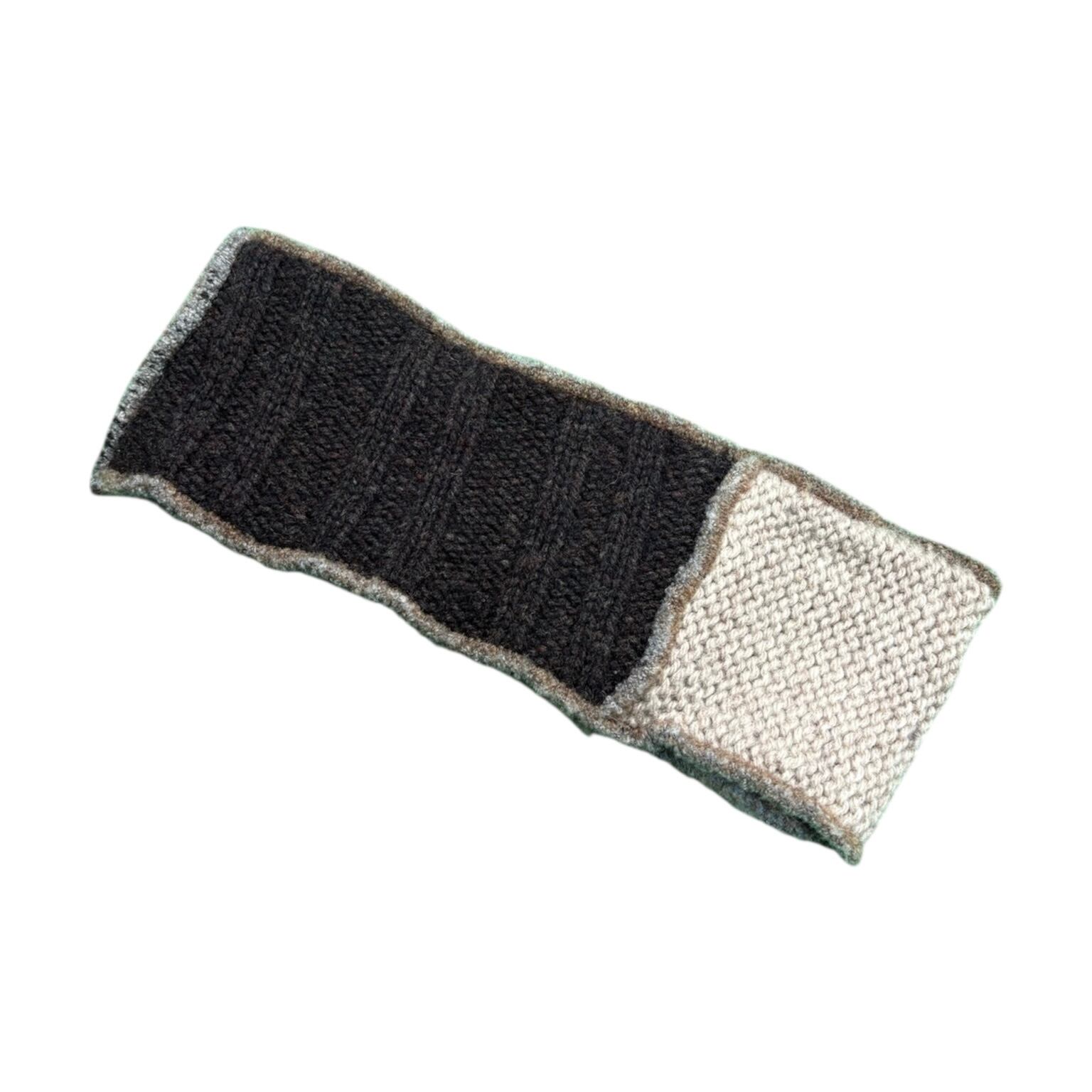 淡いトーンの切り替えと、ネップの入った素朴な編み地が魅力の一点です。アウトドアやクラフト感のある空気を持ちながらも、どこか90s〜00sらしいゆるいデザインバランスがあり、実用品としてだけでなくファッション小物としても十分に成立するアイテム。中央に付く小さなパッチも程よいアクセントになっていて、シンプルすぎず、さりげなく個性が出せます。