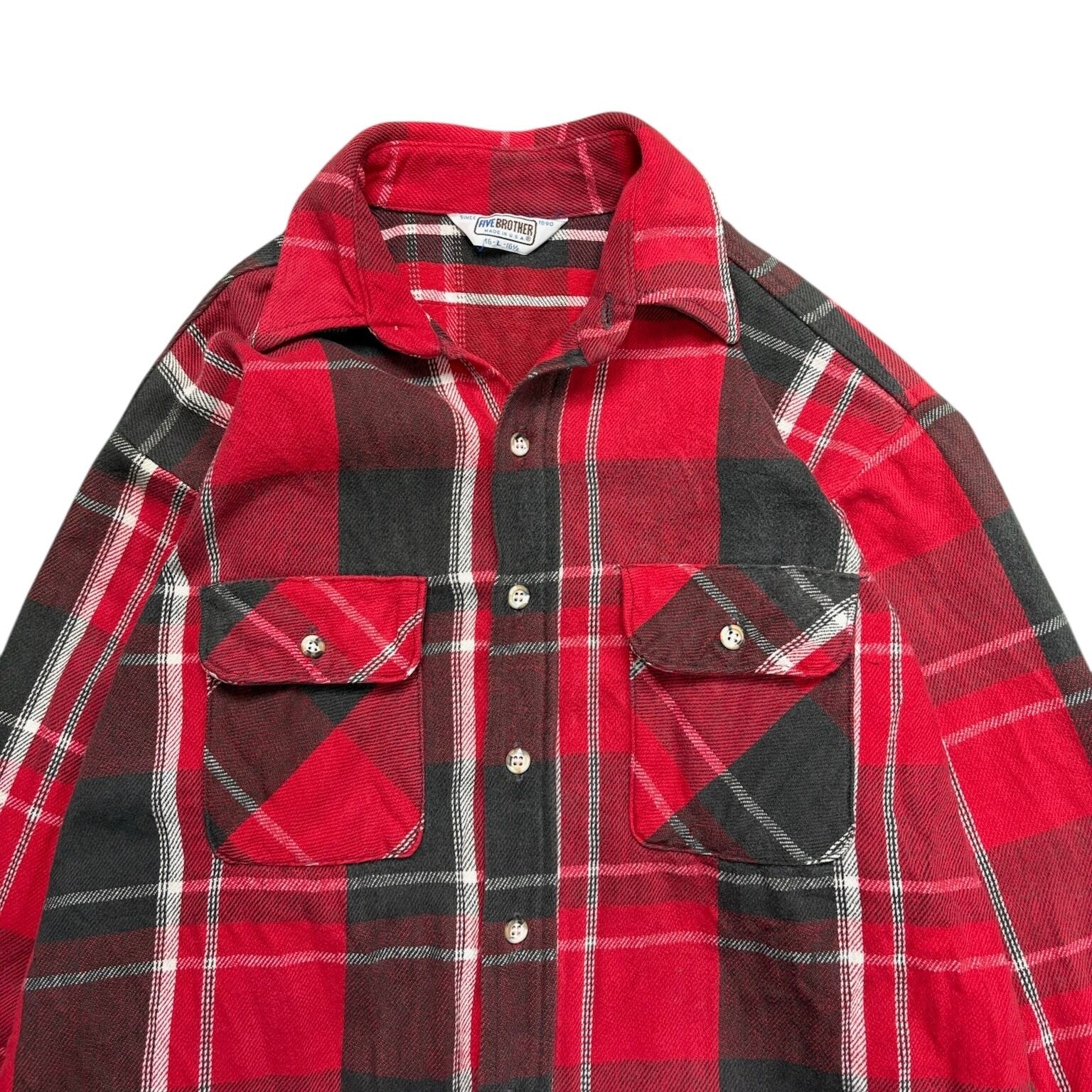70s-80s FIVE BROTHERS Plaid Pattern Flannel Shirt