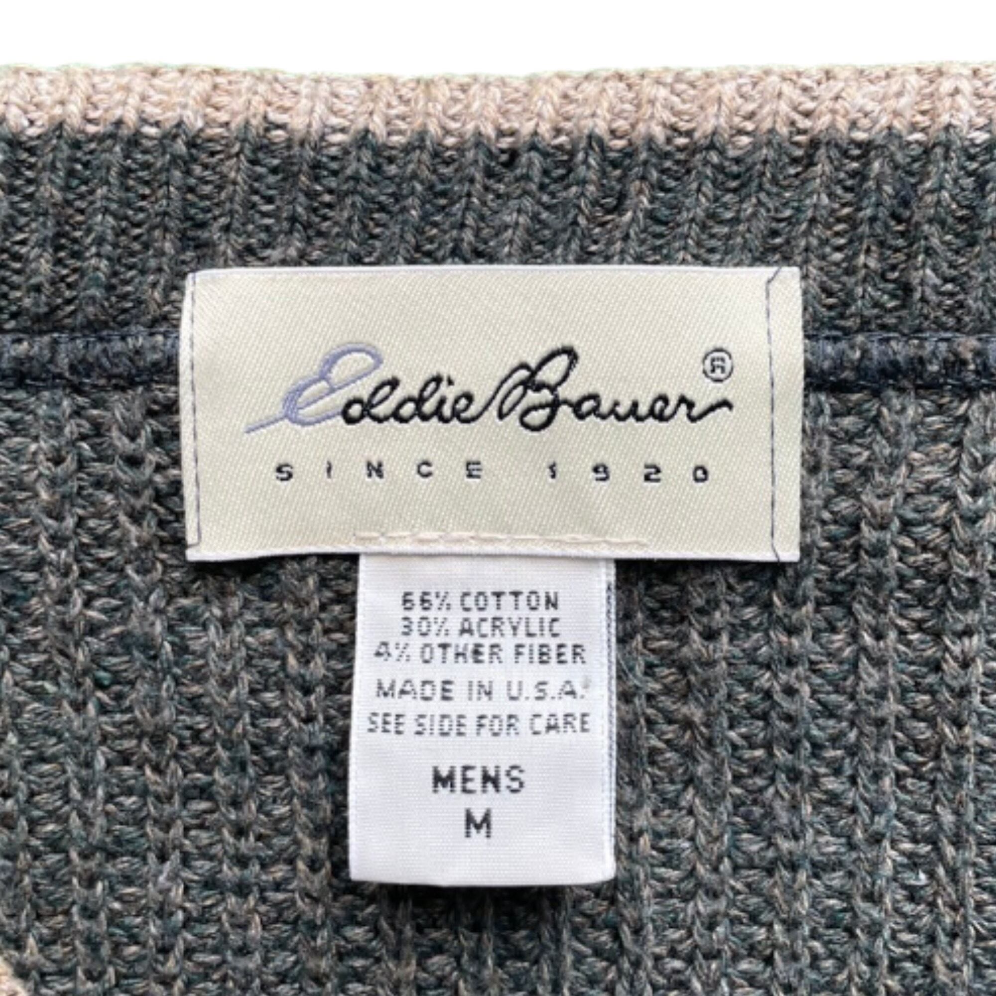 90s "eddie bauer" vネック コットンニット アクリルニット vネック 白タグ アメリカ製 オーバーサイズ グリーン エディーバウアー