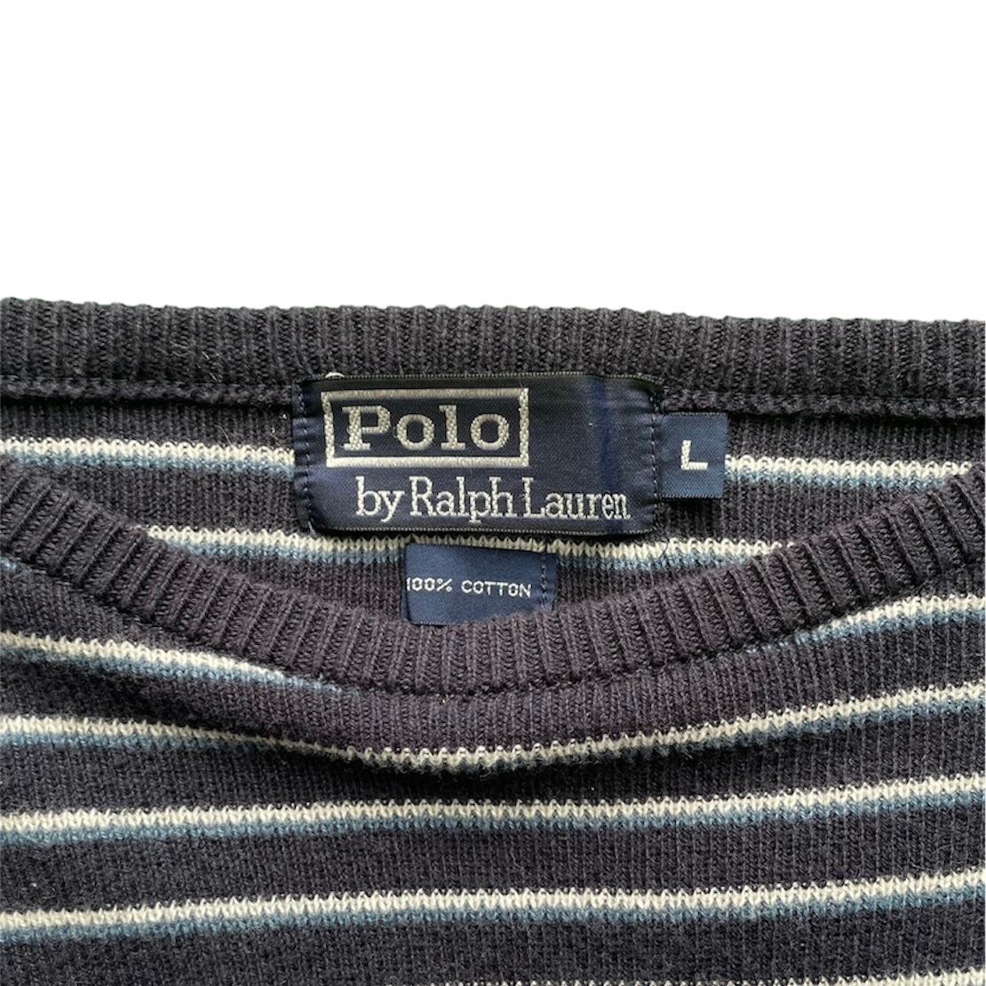 90s〜 "POLO RALPH LAUREN" ボーダーニット セーター コットン モノトーン