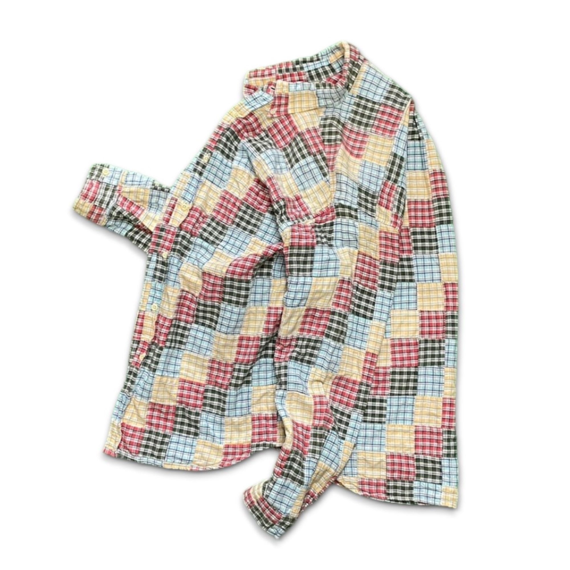90~00年代頃のj.crewのパッチワークシャツです。派手な印象を持ちがちなパッチワークシャツですが、意外にも着てみると合わせ安いアイテムかなと思います。1枚でバサッと羽織って着ても様になりますし、インナーとして着てレイヤーさせるなど、色んな着方が可能なシャツだと思います。
