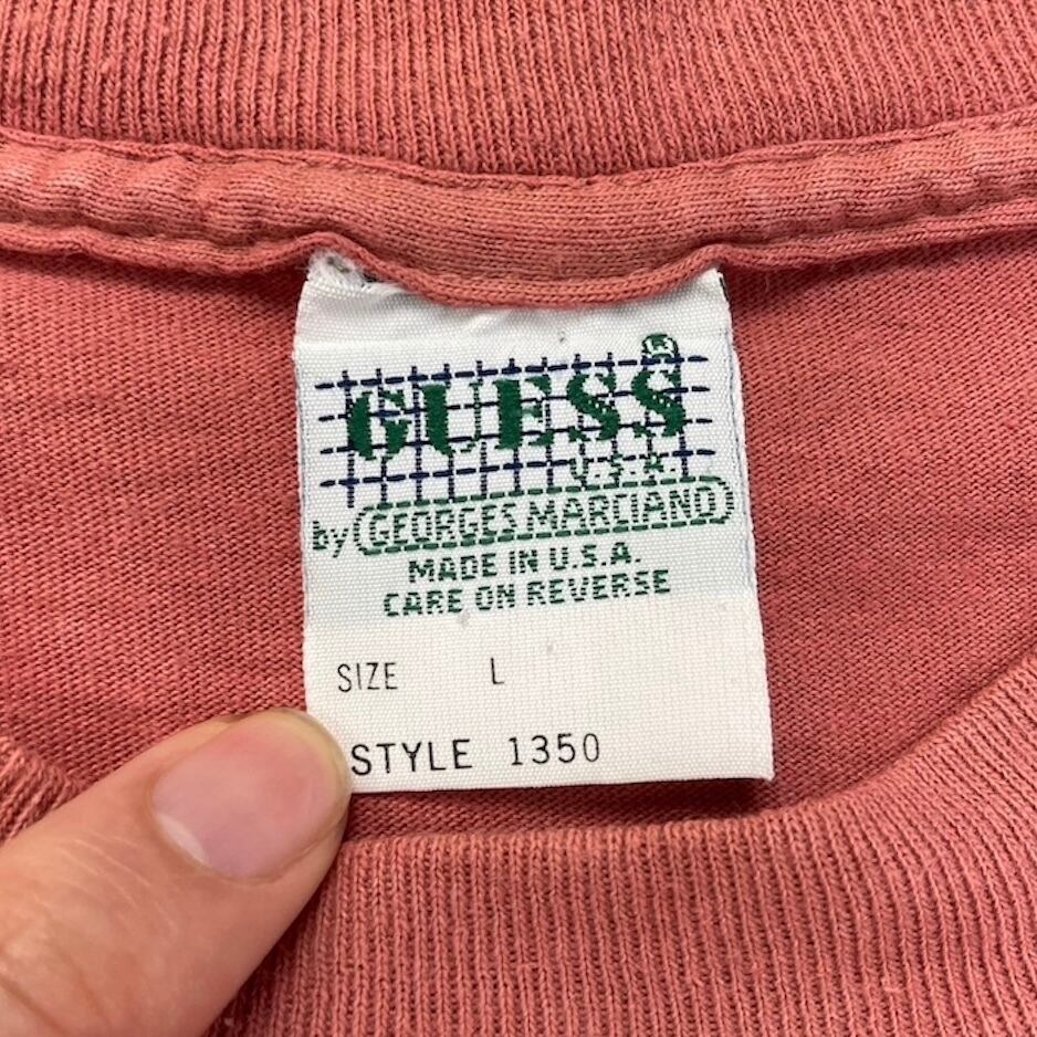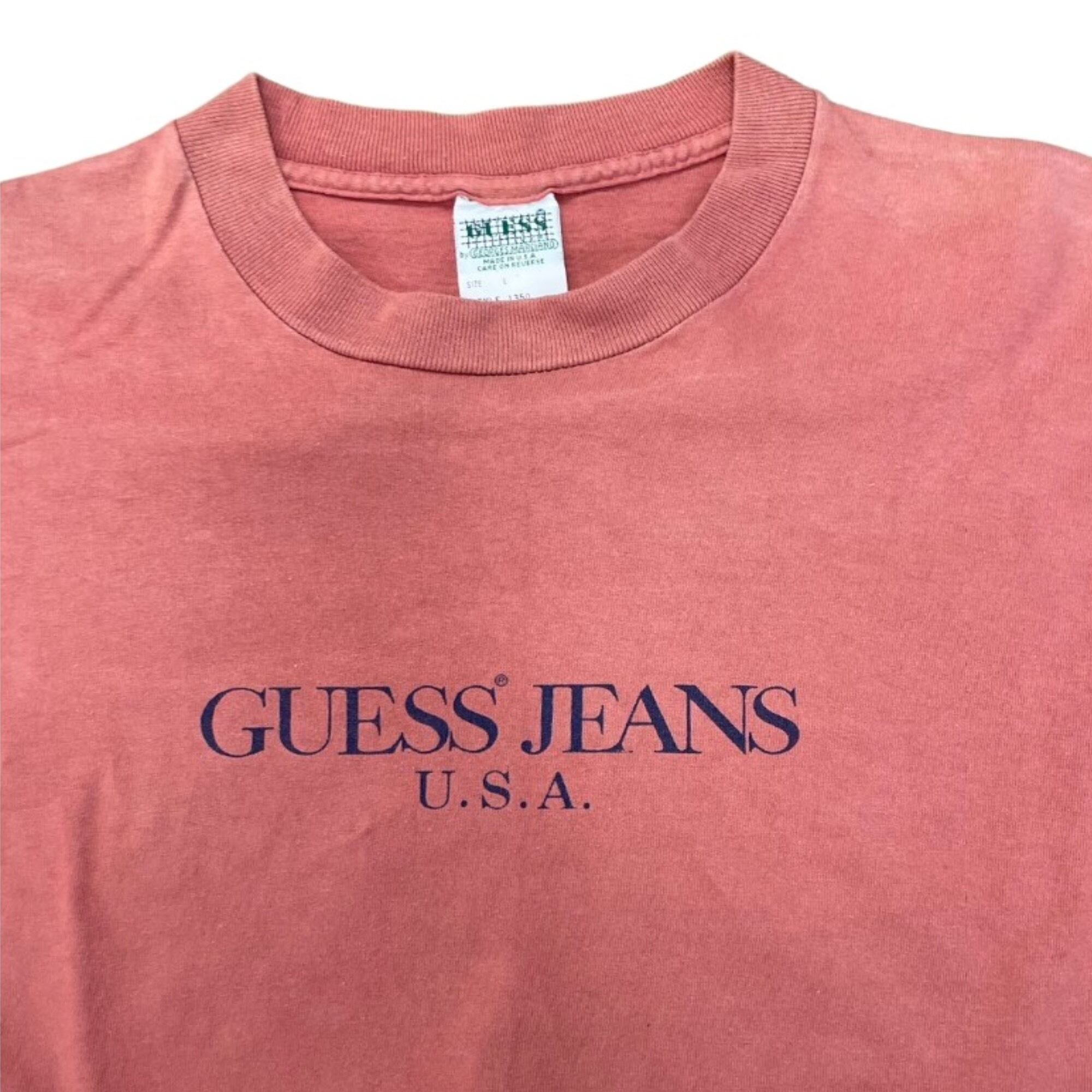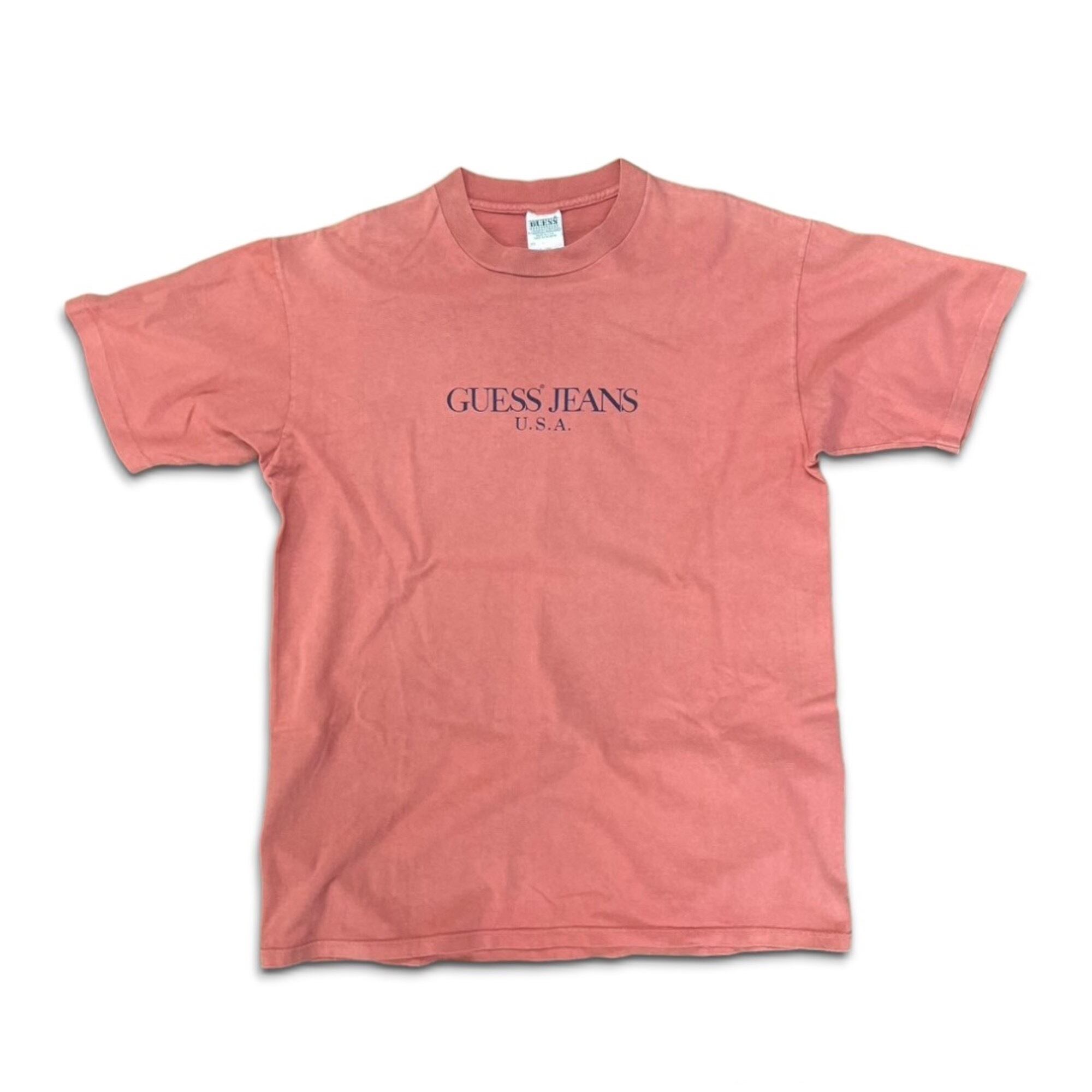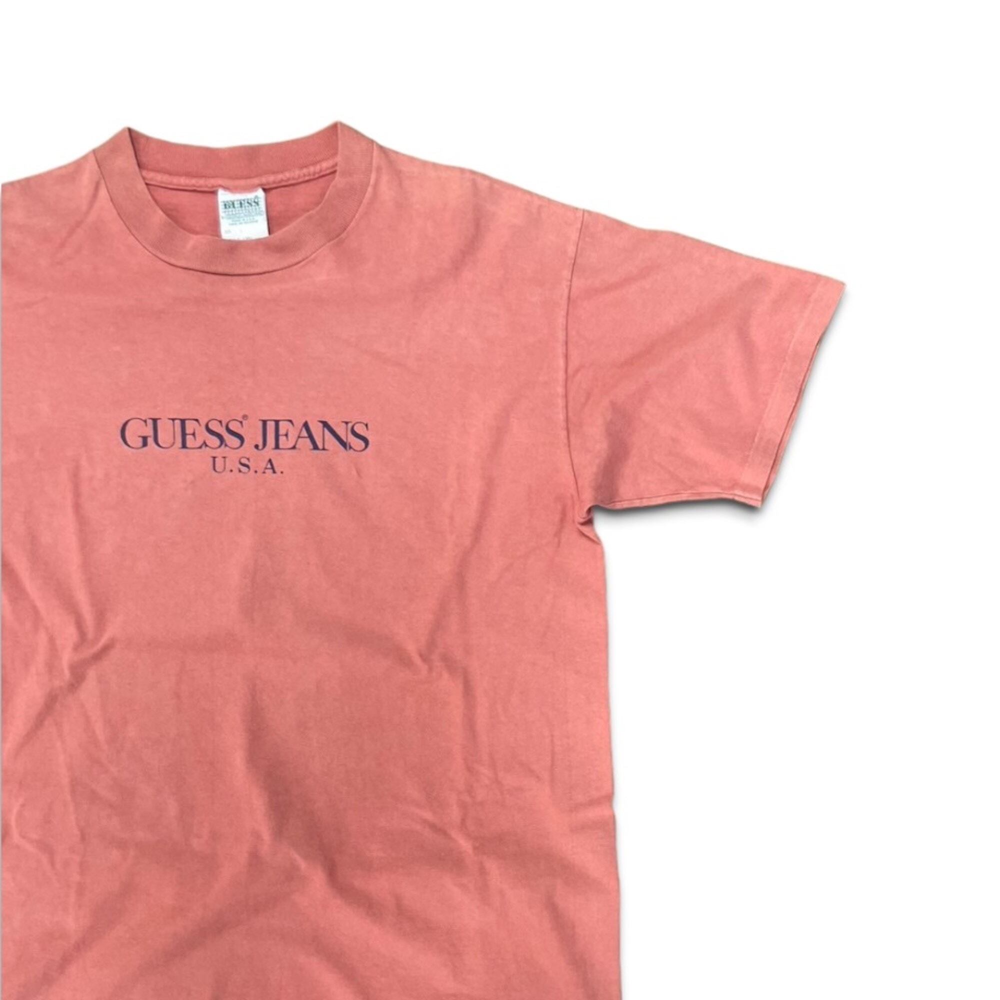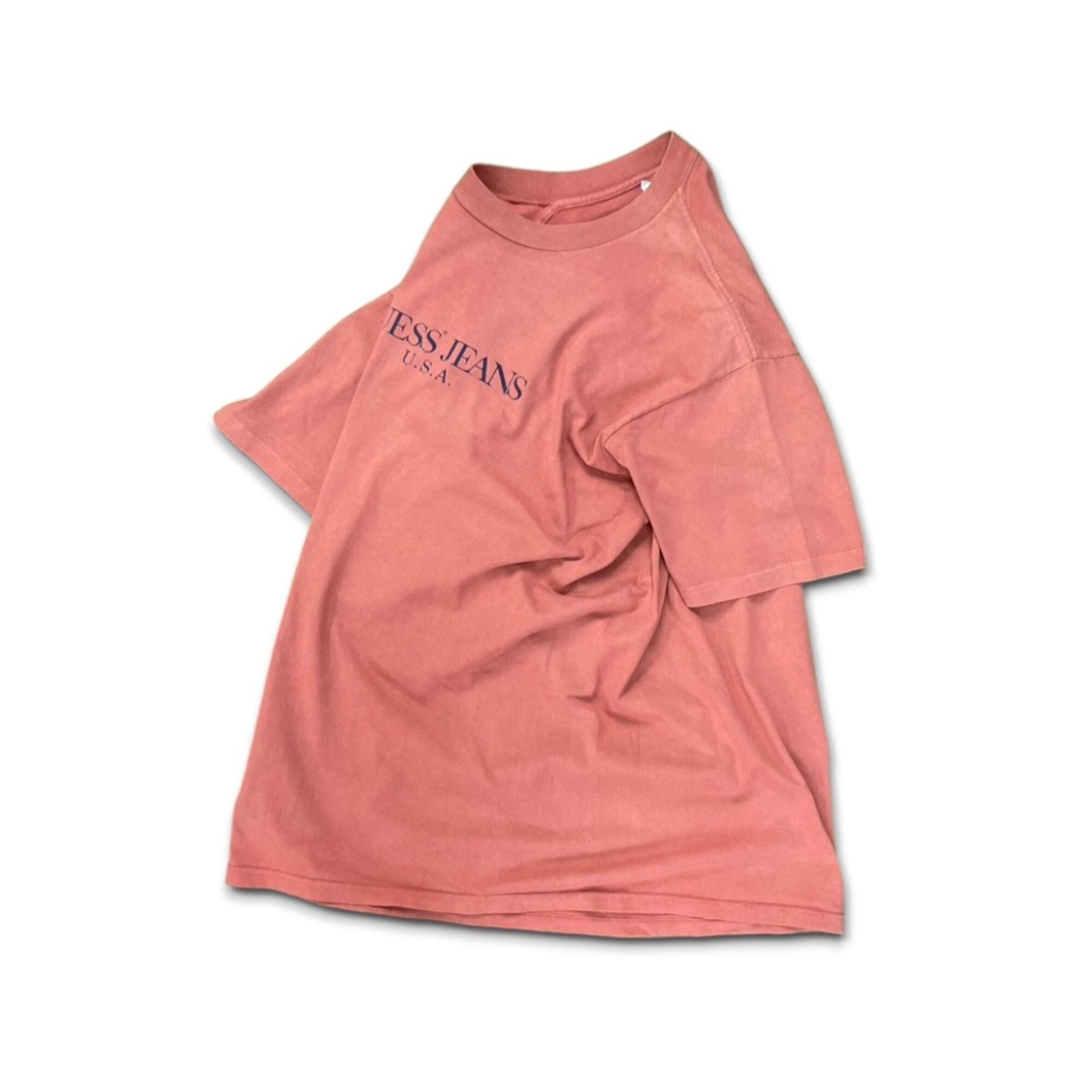 00s-90s "GUESS" オールドゲス ゲスジーンズ Tシャツ サーモンピンク USA製 アメリカ製