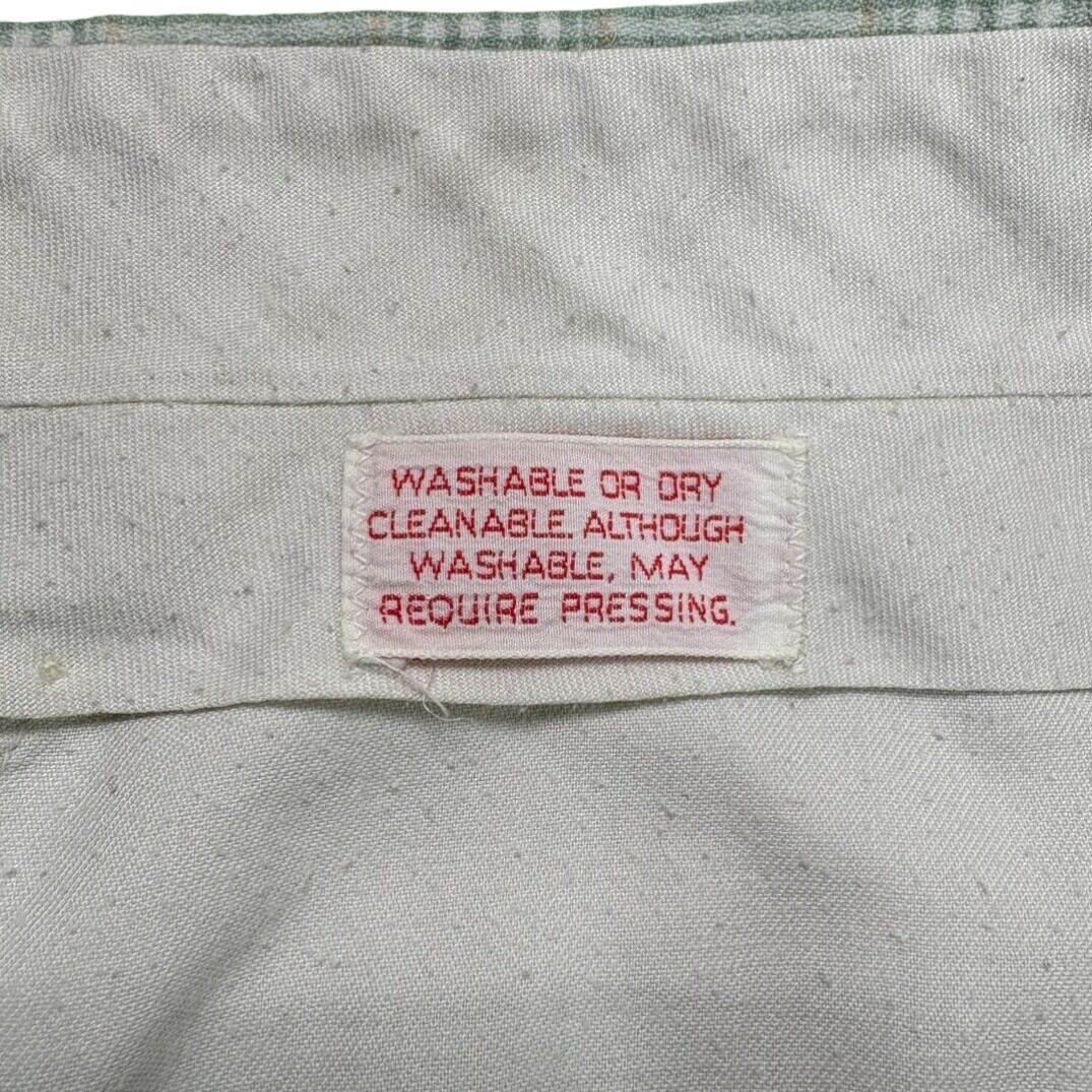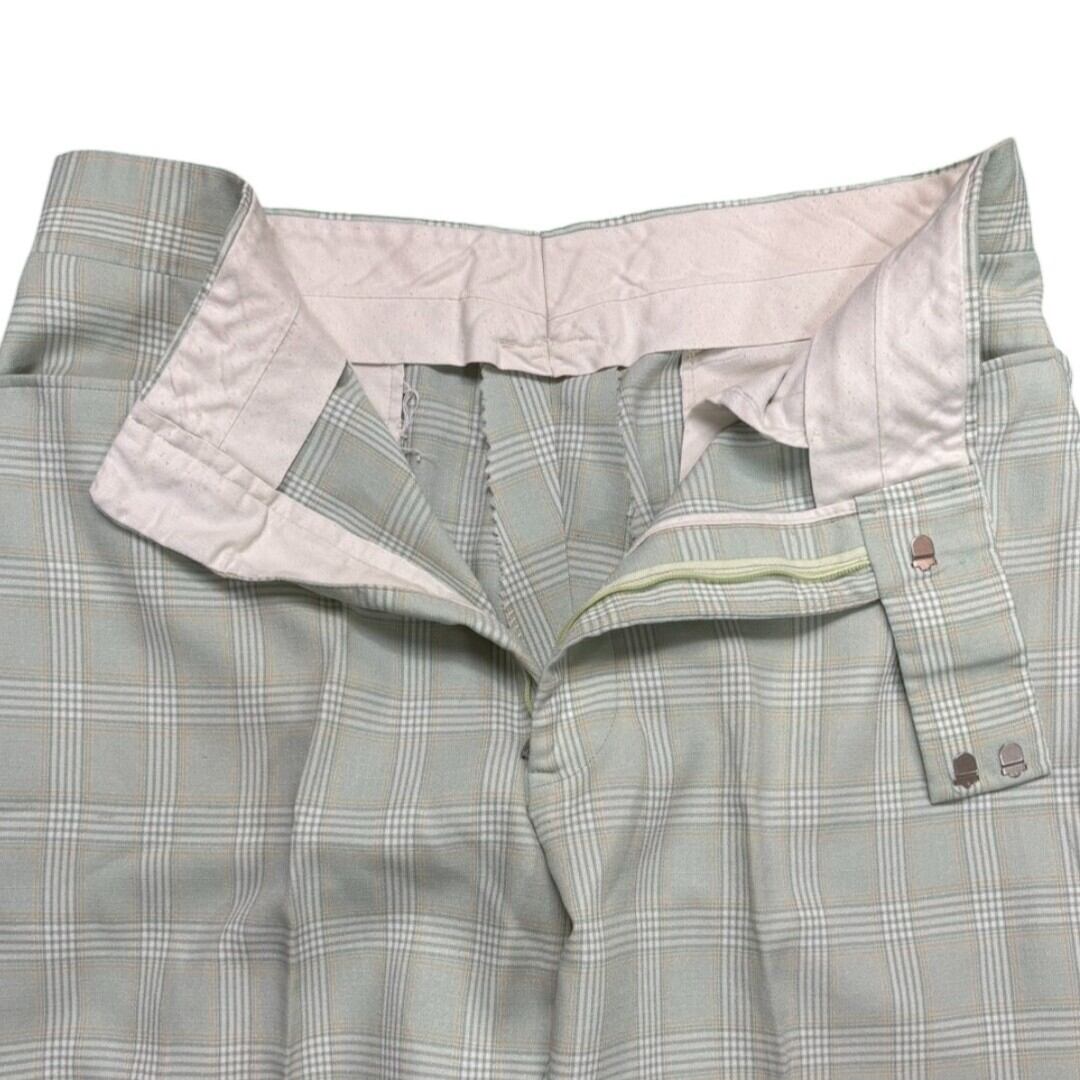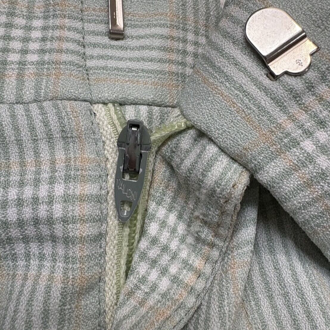 張りのある生地とフレアのクラシックなシルエット、淡いミントのチェック柄が合わさることで、日常のスタイルに軽やかさとヴィンテージらしい遊び心をプラス。個性的ながら取り入れやすい、70sならではの一本です。