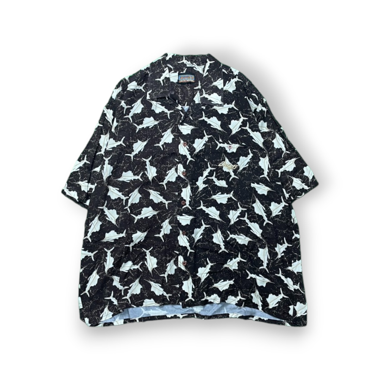 90年代頃のBOSS BY I.G.DESIGN というブランドのカジキマグロ総柄シャツになります。
