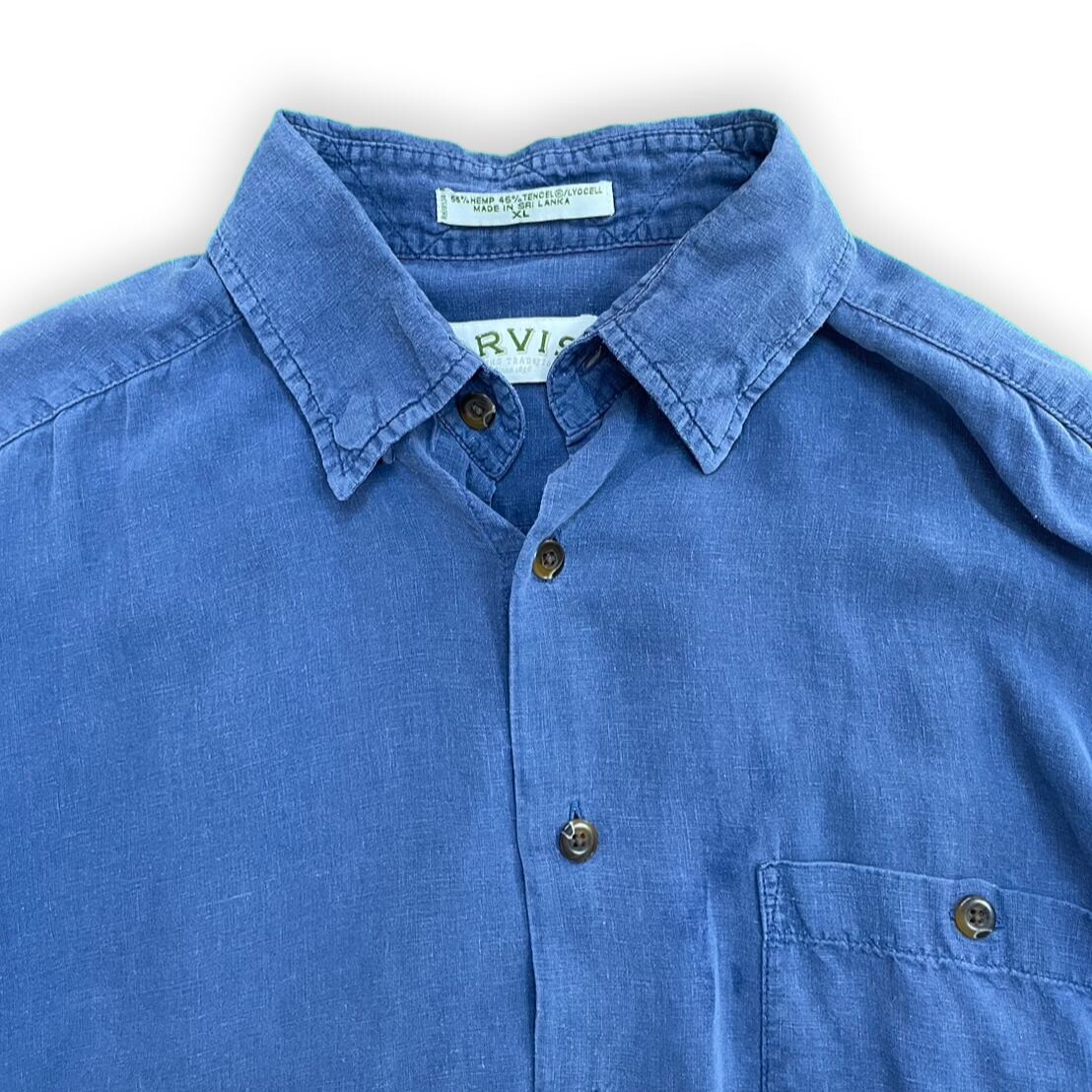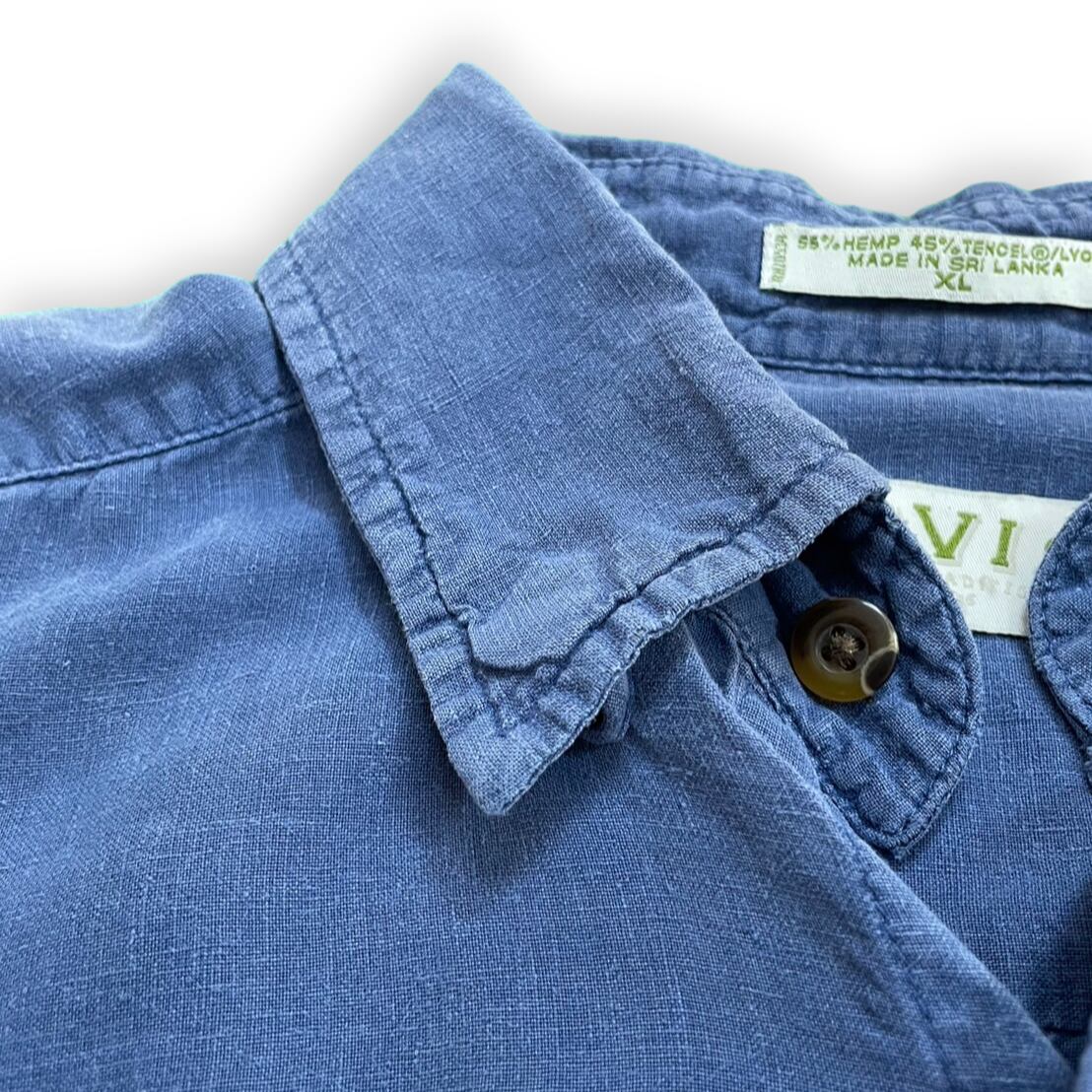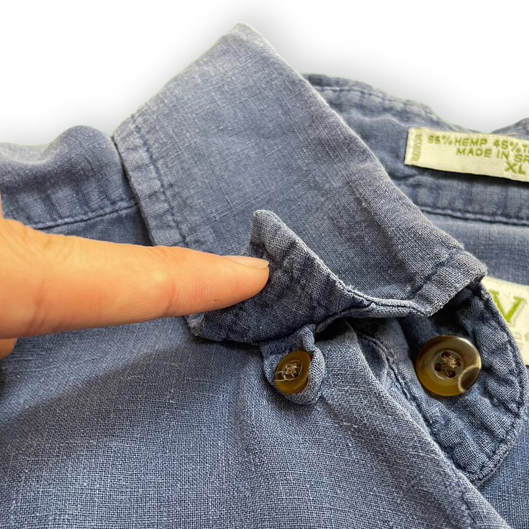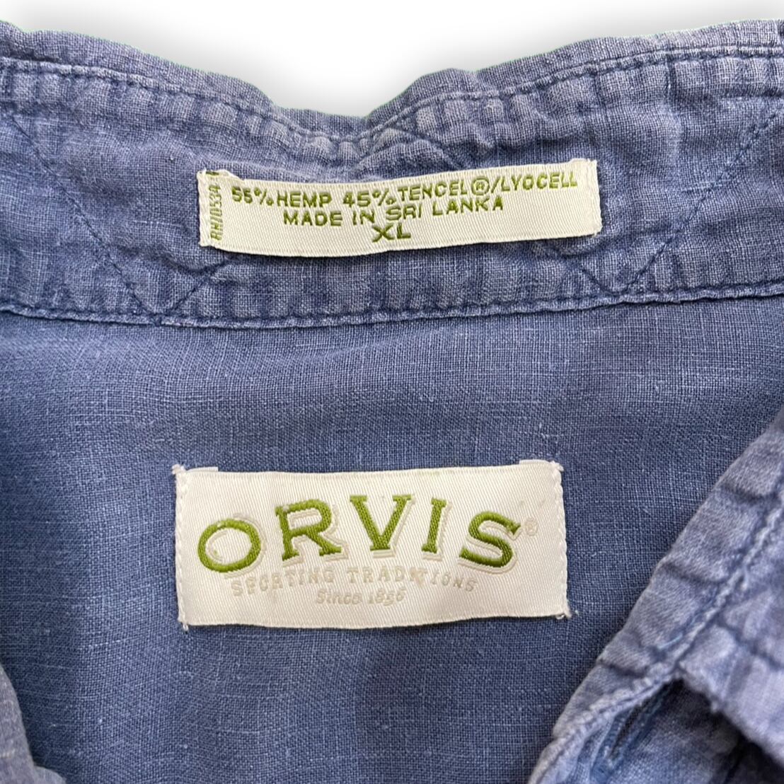 "ORVIS hemp navy short sleeve shirt"