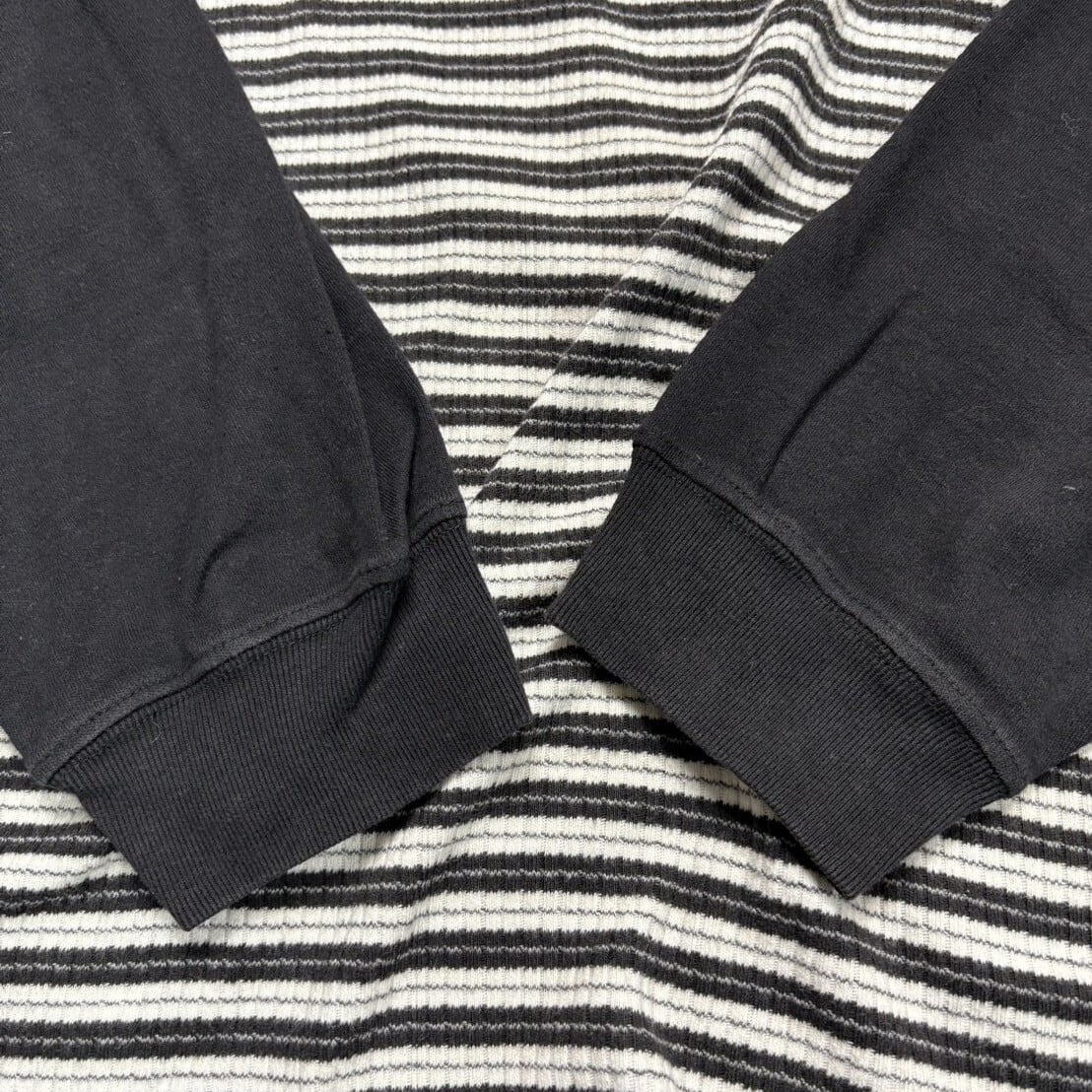 90年代「Joe Wear」による珍しいデザインのハーフジップシャツ。襟、背面、袖はブラックで引き締めつつ、前面はボーダー柄でアクセントを効かせた構成が特徴的。シンプルながら一目で個性を感じさせる、遊び心のある一枚です。
