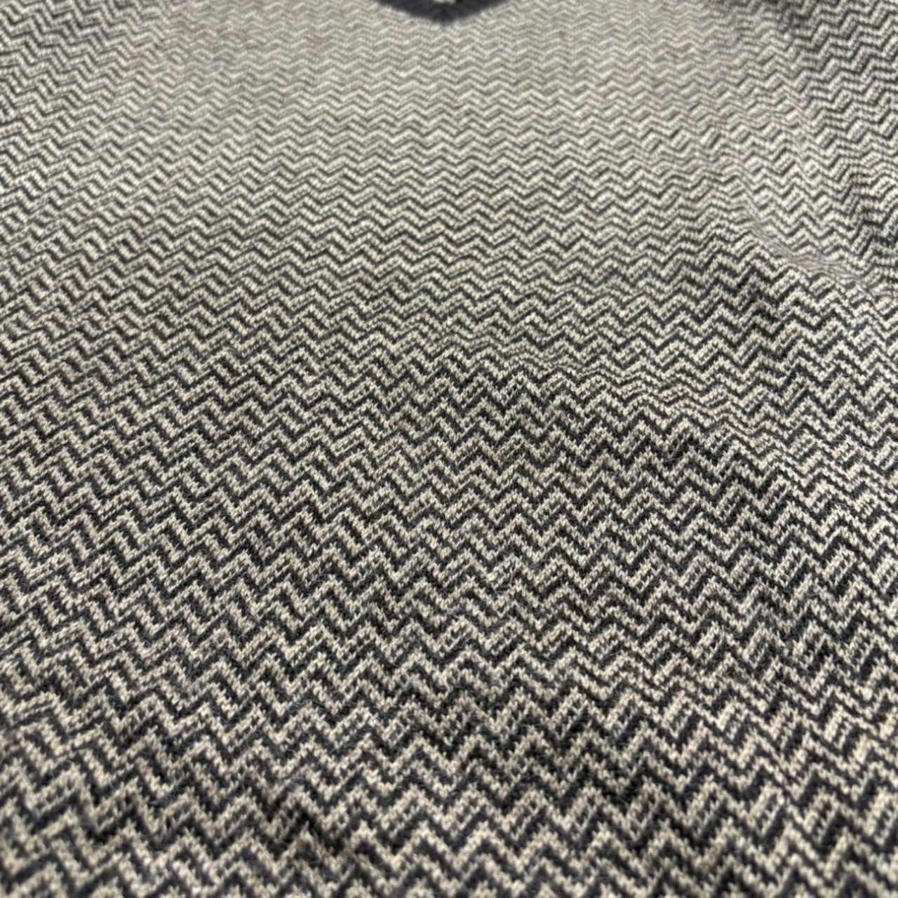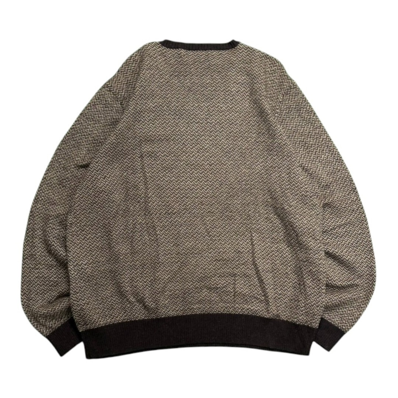 落ち着いたブラウンをベースに、よく見るとジグザグのパターンが浮かび上がる Polo by Ralph Lauren のVネックニット。ぱっと見はシンプルで上品ながら、近くで見るとさりげない柄が効いています。アルパカ×ウール混の素材は柔らかく保温性も抜群で、着心地の面でも満足感があります。